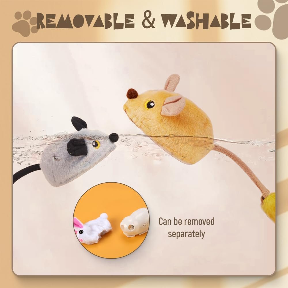 【Durable and Safe Design】Crafted from high-quality materials, this interactive mouse toy is built to withstand even the most enthusiastic play sessions. The durable construction ensures that it can endure rough play while remaining safe for your cat, without any small parts that could be swallowed.