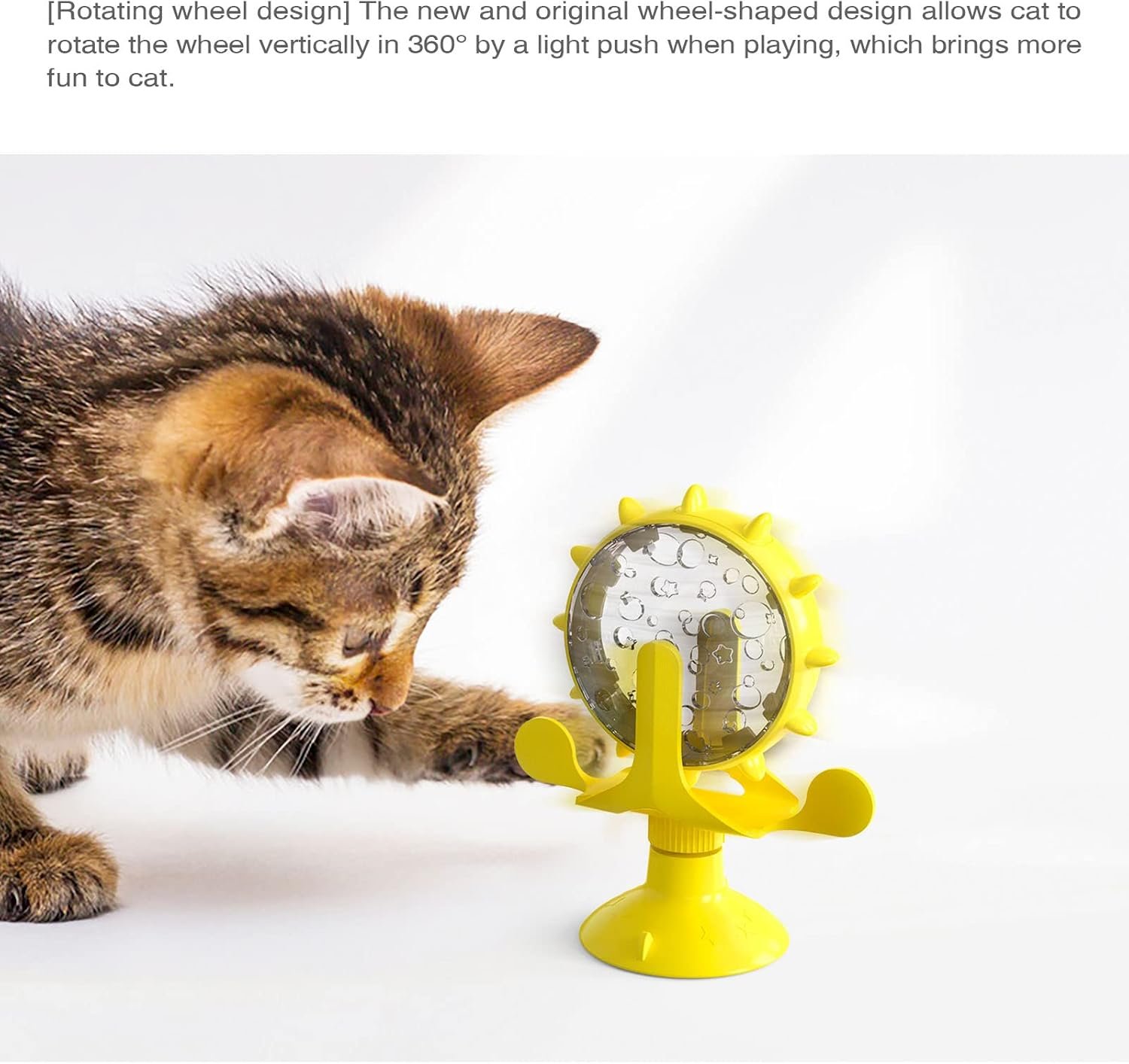 😸【Creative Rotating Design】: This windmill toy features food-leaking holes, and it is 360 degree rotating, so your cat can play with it and enjoy the cat food dispensed by it. It is an interactive toy for cats.