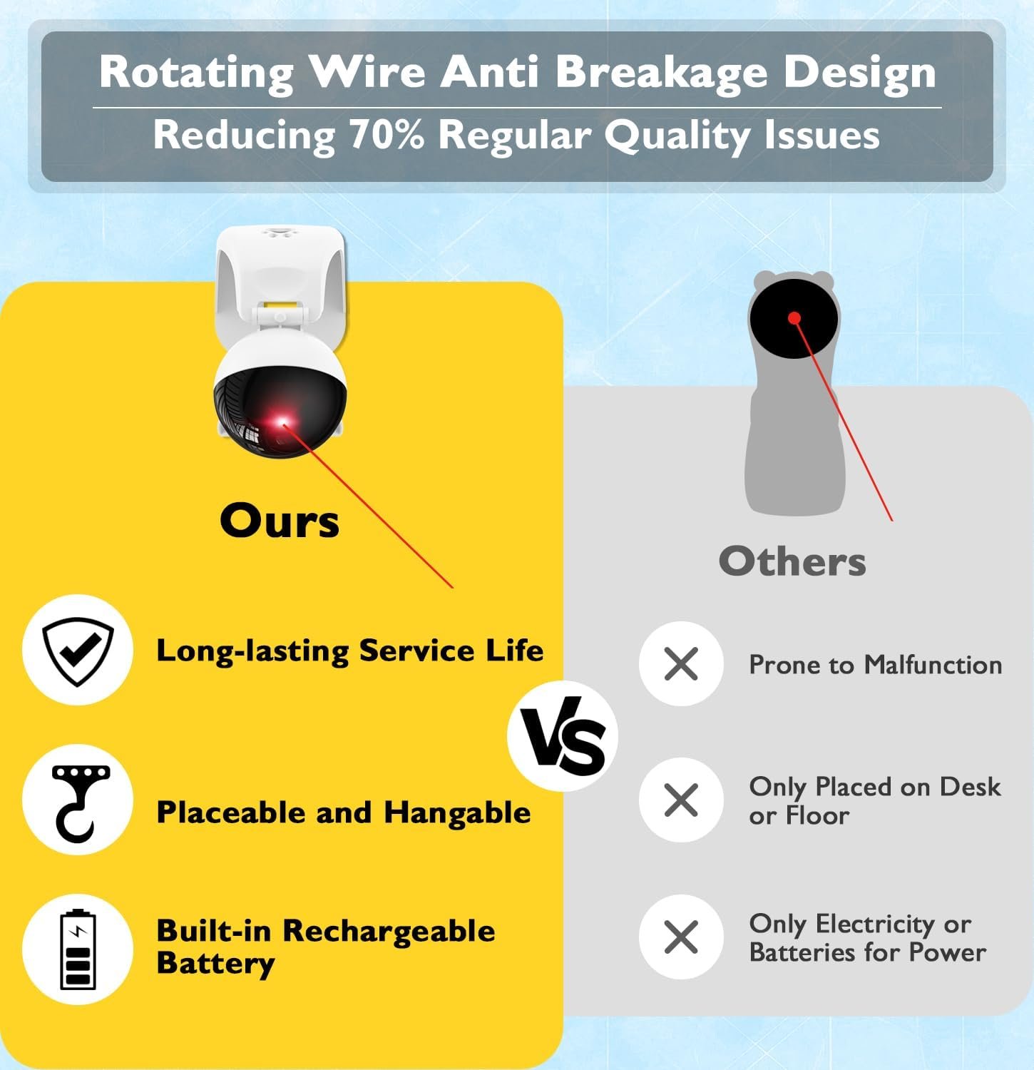 【Silent and Durable Motor】The automatic rotating laser light is made of a motor with a long service life and high reliability. The silent motor meets the entertainment and exercise requirements of cats while not generating excessive noise that would be annoying to both cats and people