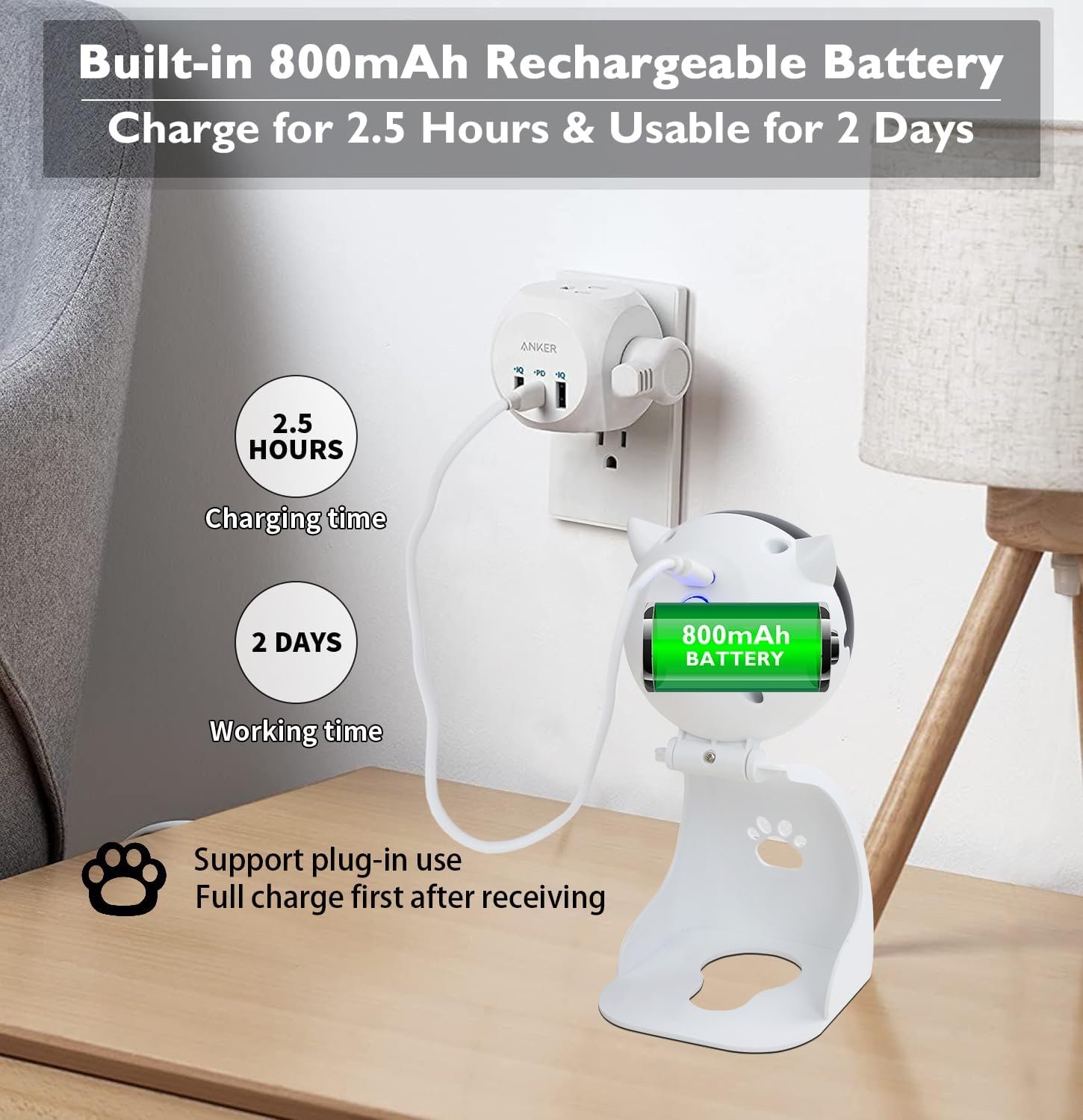 【Rechargeable Large Battery】800mAh USB rechargeable large capacity battery is included,. Charging 2.5 hrs,working 2 days continuously.Please Use 5V/1A Adapter Charging the toy