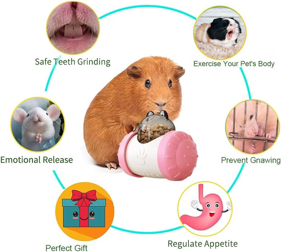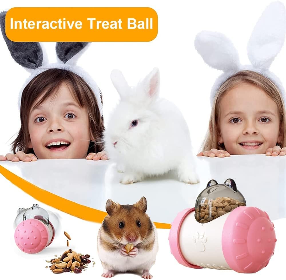 HAVE A FUN:The treat ball allow you have more interactive fun with your pets Rabbit food dispensing toys are perfect for interaction with your hamster; promoting the bond between you and your pets