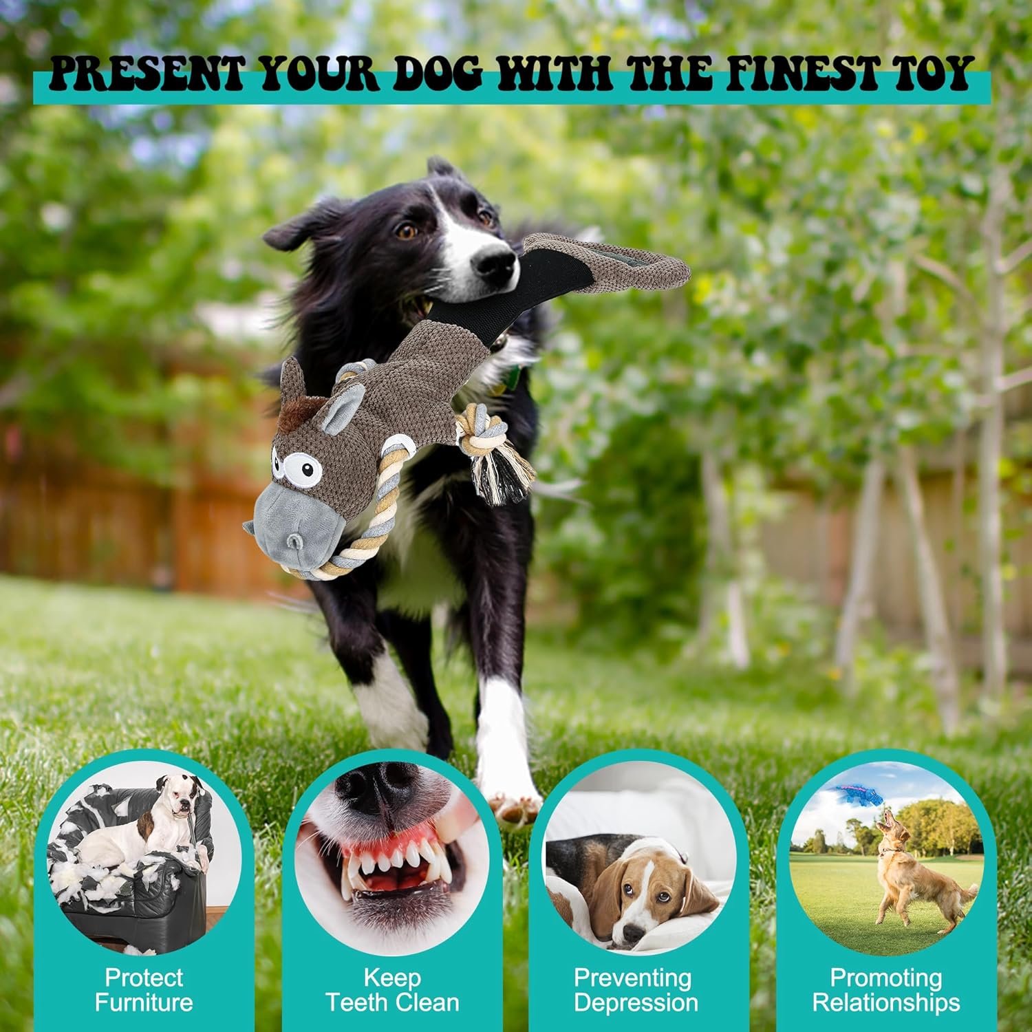 Soft Plush Material: This toy boasts an adorable donkey shape that will instantly capture your dog’s heart. Crafted with high-quality double-layered fabric, this plush toy ensures durability and longevity. It can withstand your dog’s rough play and provide hours of entertainment.