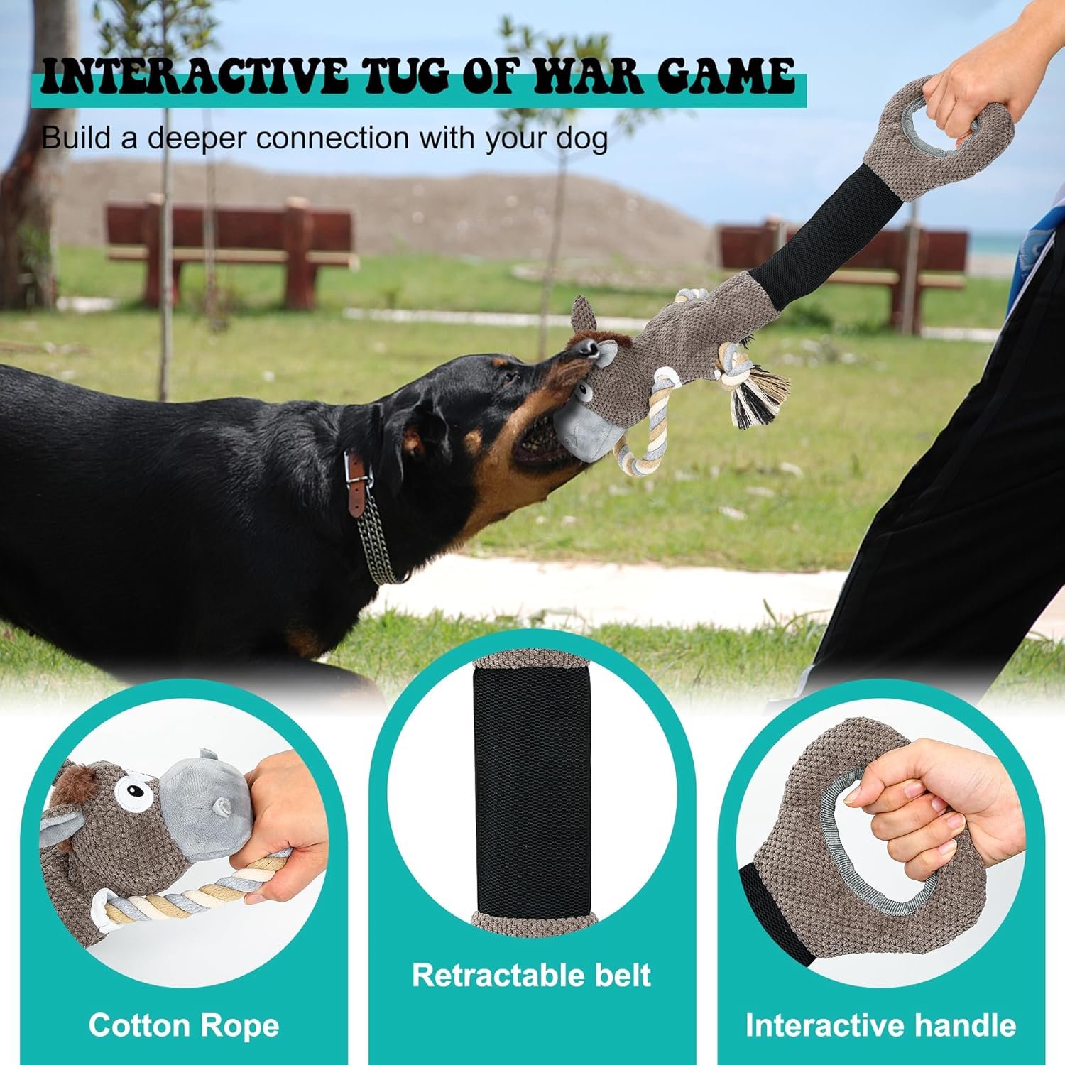 Extendable Spring & Interactive Pull Rope: It features a specially designed flexible extendable spring placed in its belly, allowing your dog to pull and stretch it, that will pique your dog’s curiosity and keep them entertained for hours.Additionally, we have equipped the toy with a sturdy pull rope, promoting interactive play between you and your dog. You can engage in a game of tug-of-war, strengthening the bond while providing mental and physical stimulation.