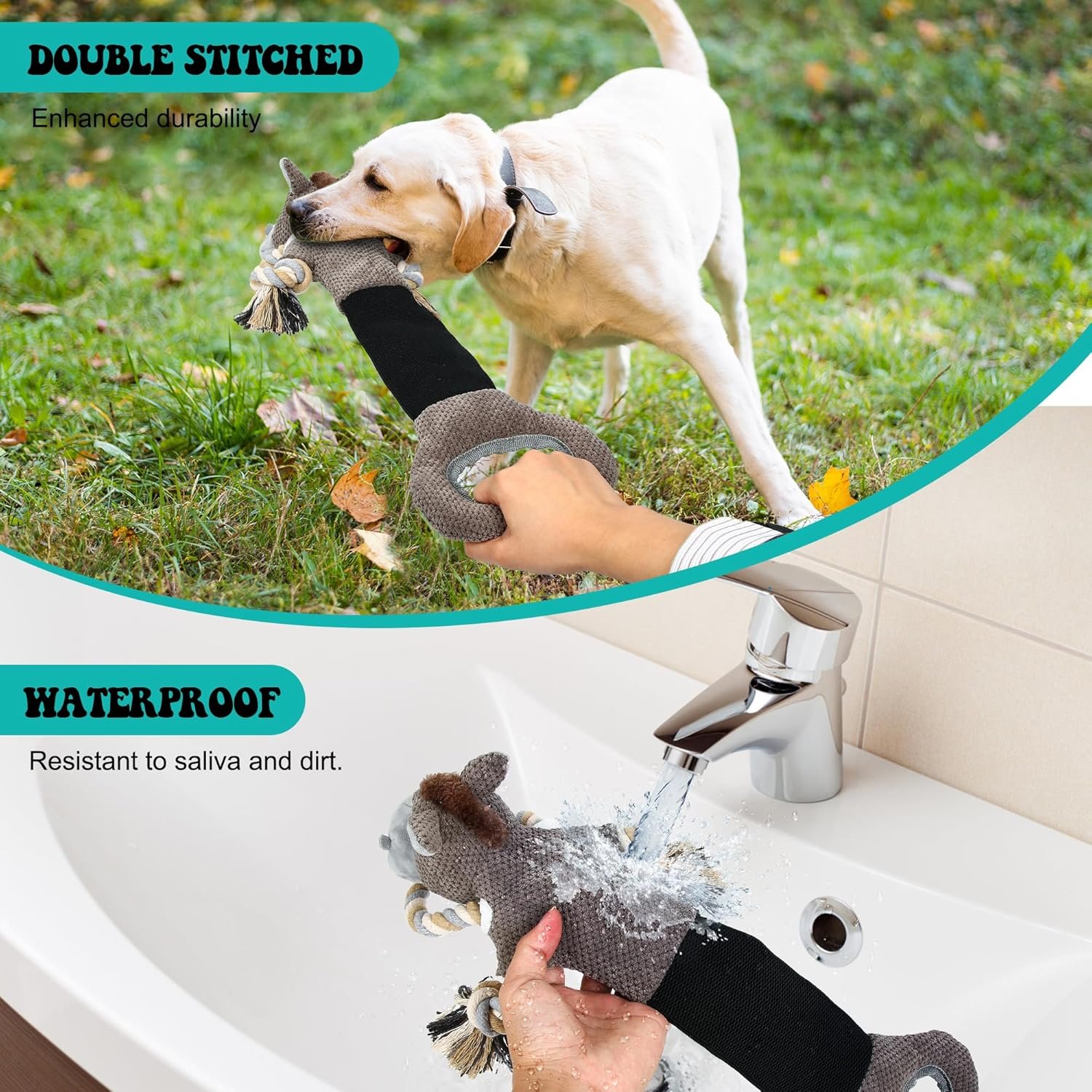 Relieve Emotions: Our robust and squeaky plush dog toy is designed to alleviate your furry companion’s boredom, anxiety, and depression. Whether it’s a game of fetch or a comfort toy, this durable and rugged dog toy is ideal for play and tug-of-war, preventing damage to your furniture. Suitable for small , medium and larger dogs .