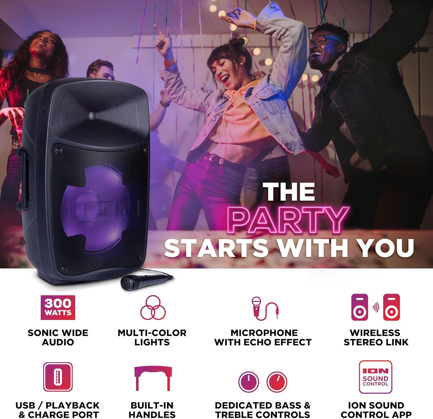 ION Sound Control App – Easily customize volume, EQ and lighting functions or get the latest firmware updates straight to your Android/iOS device’s screen for a more dynamic experience