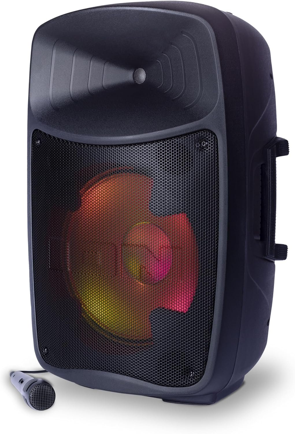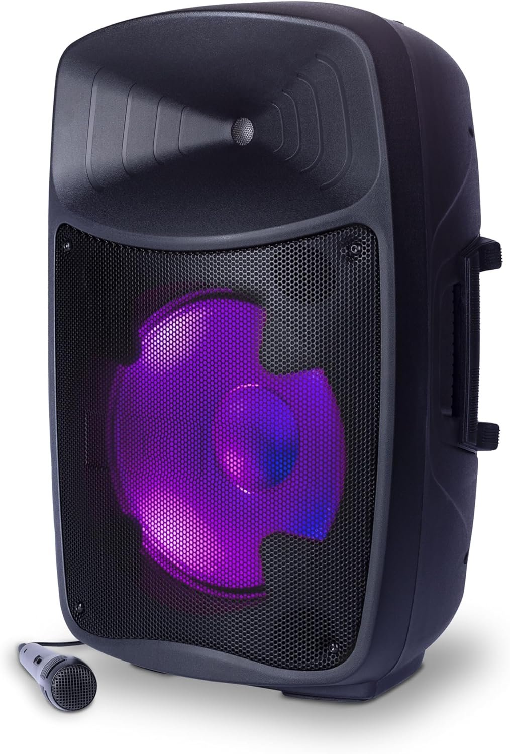 Sonic Wide Audio – Bi-Amplified 300W sound system with 12″ woofer and 1″ tweeter for premium cordless sound; with built-in lights and karaoke microphone with echo FX for endless parties and family fun