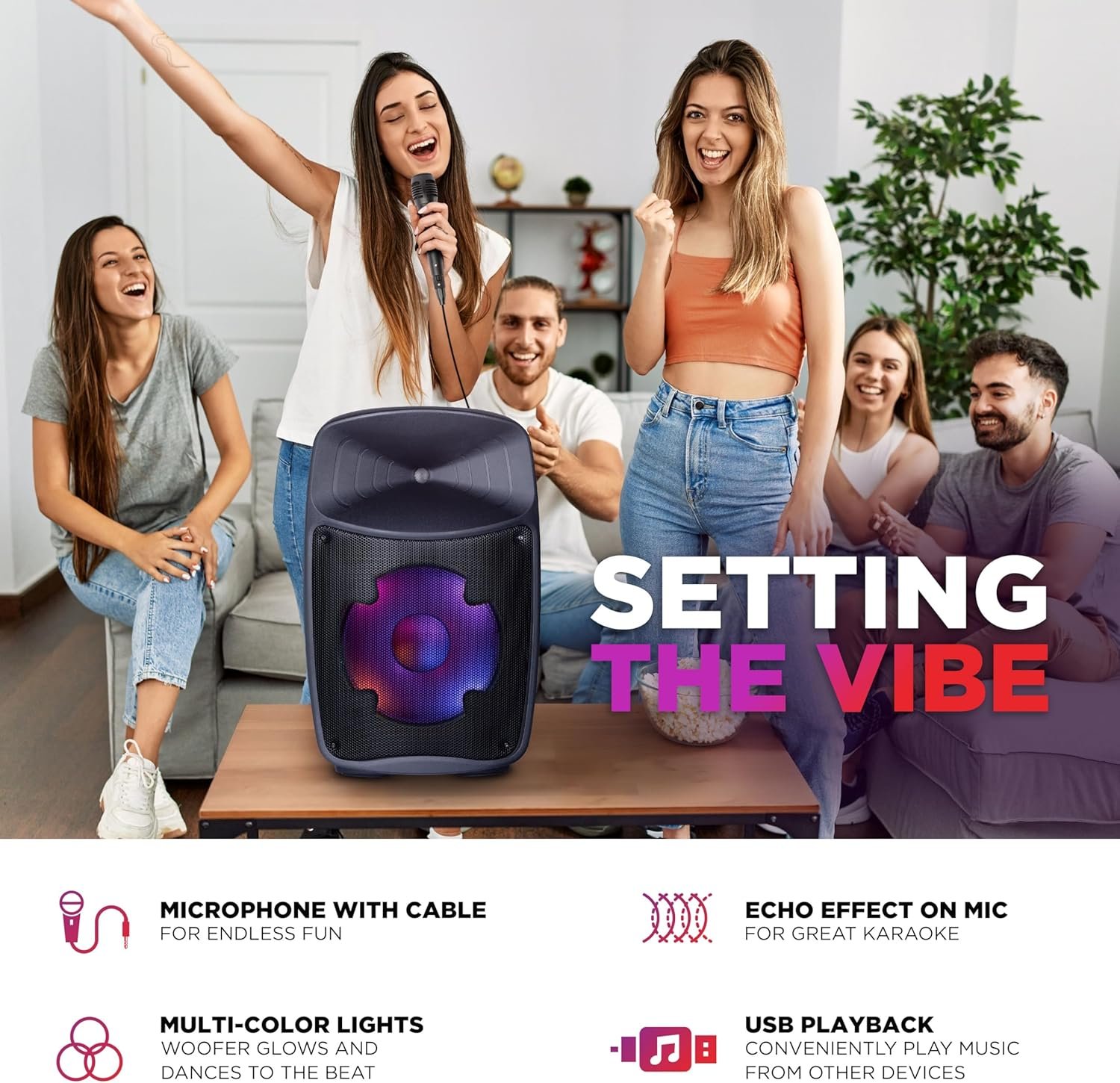 The Full Package – Plug-in the included microphone with cable, activate the added Echo effect and use your Pro Glow Ultra for public speaking, karaoke, parties, weddings, family gatherings and more