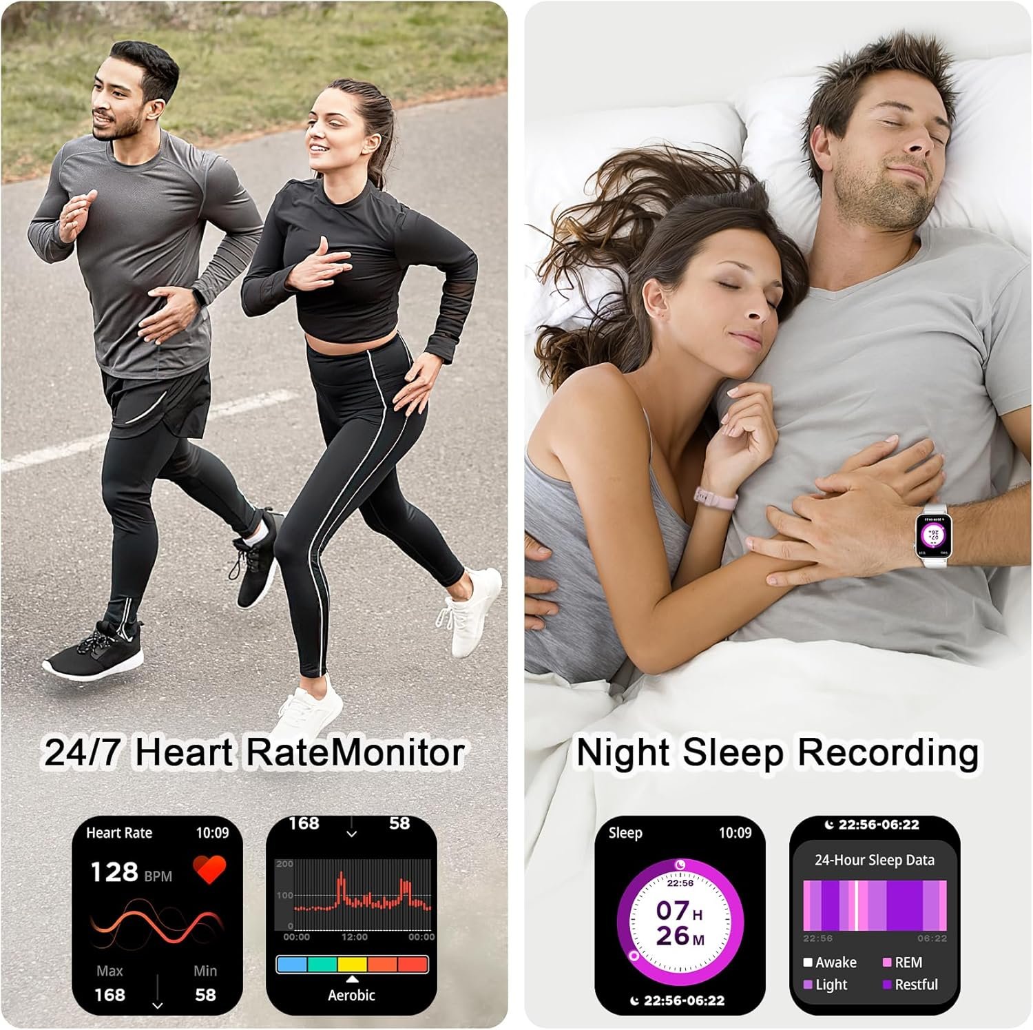 💓【24/7 Health Monitoring】The fitness watch is equipped with a motion sensor that can automatically monitor dynamic heart rate real-time in 24/7, It can also track personal sleep and detect blood oxygen saturation, and stress to adjust the personal physical condition. Offer a detailed sleep quality analysis report (light sleep/deep sleep/awake stage) through the App, helping you adjust your lifestyle and healthier. This smartwatch also helps women track their menstrual cycles.