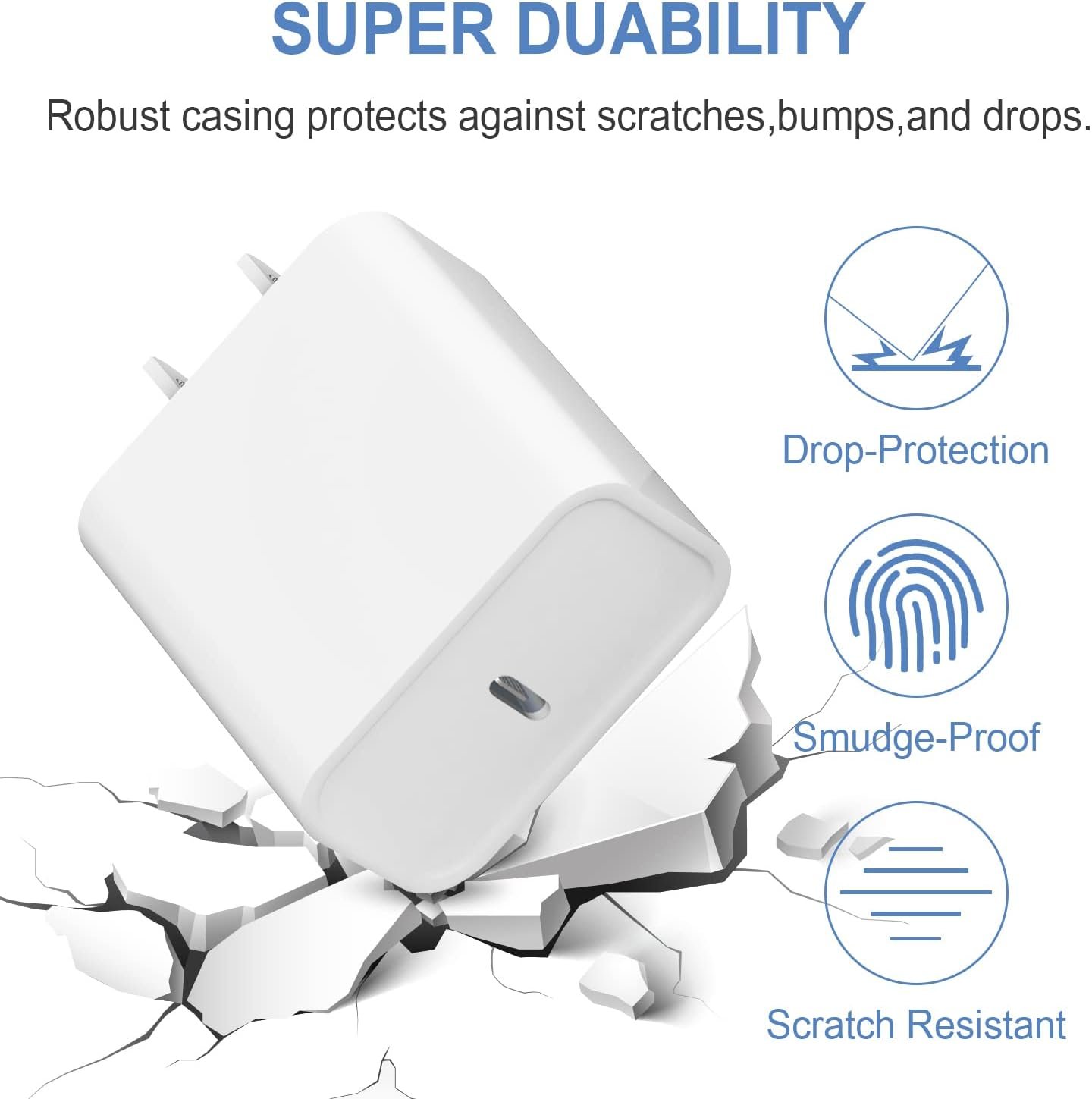 Charging Speed is 3 times as fast as PC USB port.The connector end and cable are strong for repeatedly use. Built-in advanced USB Power Delivery 3.0 chip and 20W output power.Protect your device from over-current over-voltage over-heating & short-circuiting.