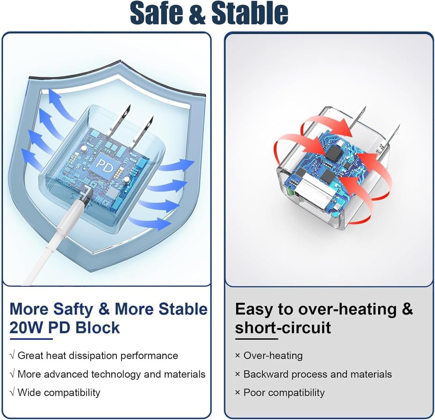 【20W iPhone 15 Pro Charger】20W iPhone 15 Pro charger fast charging with 10ft iPhone 15 charger cord cable enjoy a maximum output power of 20 watts, enabling fast charging for iPhone 15/iPad Pro/Air/Mini. Charge your iPhone 15 Pro Max fully in just 1 hours, Charge your iPad Pro 12.9 fully in just 2.5 hours, which is 3 times faster than a 5W USB charger.
