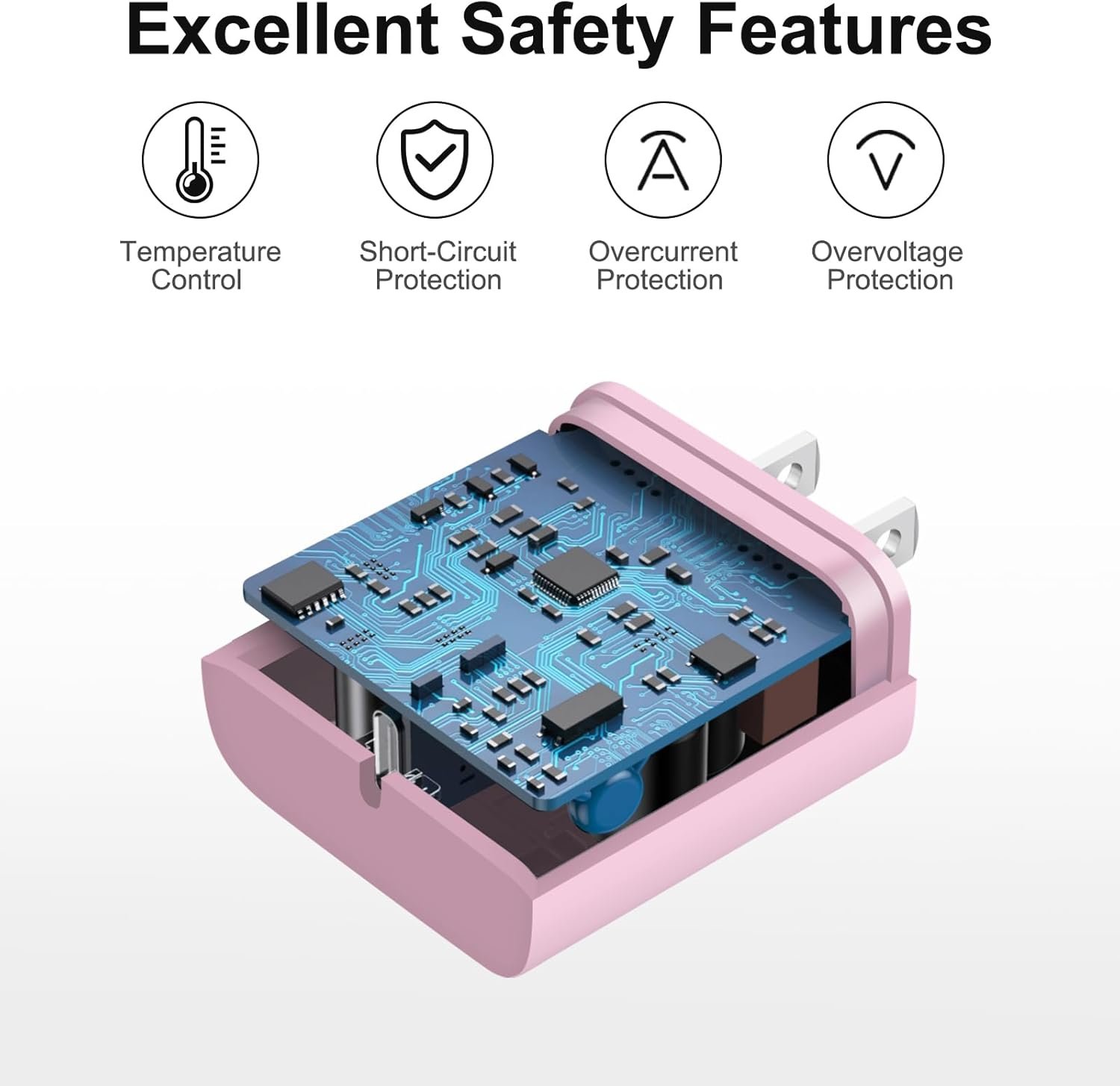 【Superior Safety】iPhone fast charger block equipped with a wide range of safety features, including temperature control, short circuit protection and current regulation to protect your connected devices and maximize the life of your device