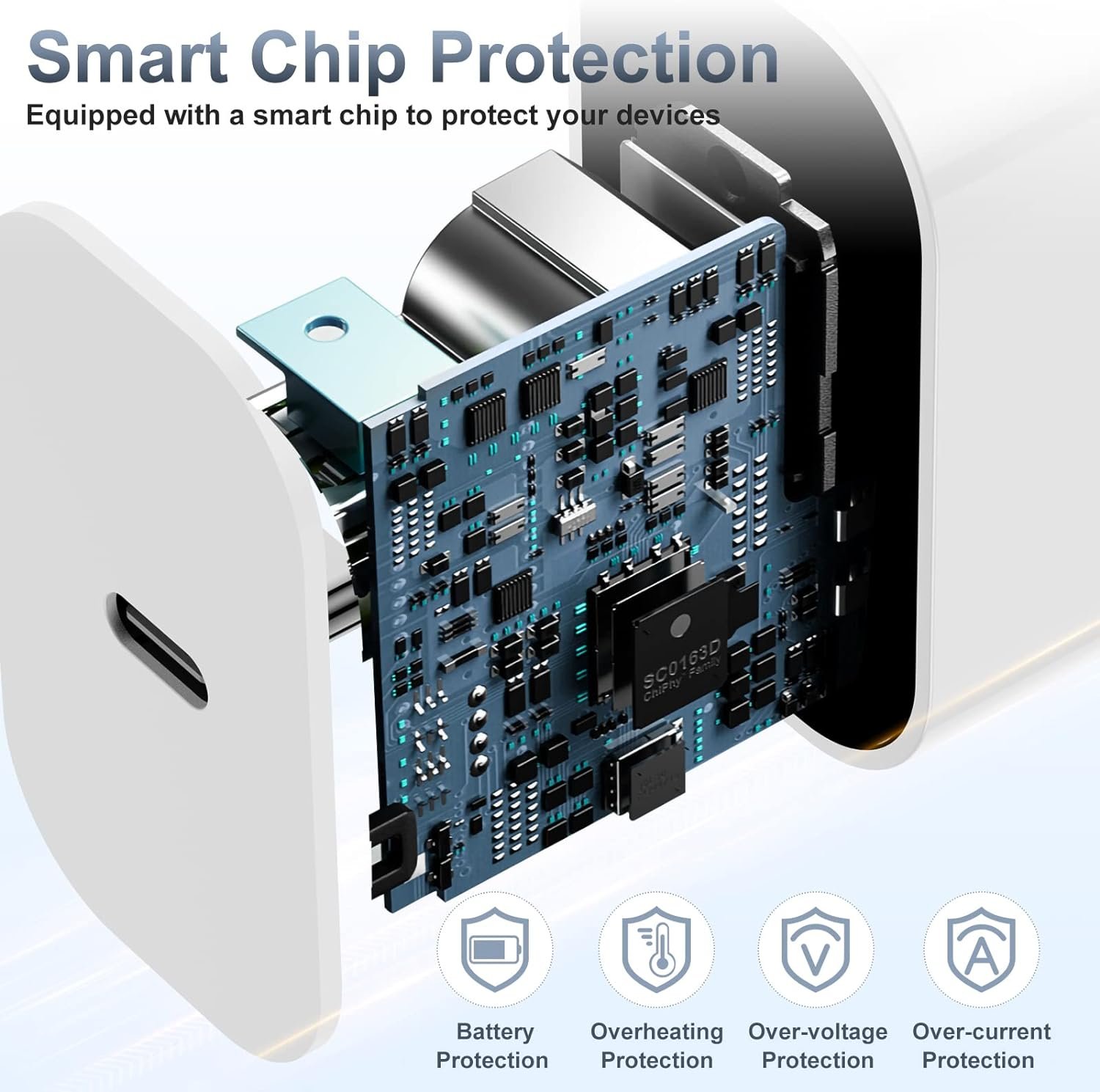 【Superior Safety Fast Charging】: ipad air 5th generation charger type c super fast charger is built-in intelligent chips, which can protect your phone against damage caused by a short circuit, over-current, over-voltage, over-heating, and over-charging issues and will automatically stop charging when fully charged for a safe charging and long lifespan.