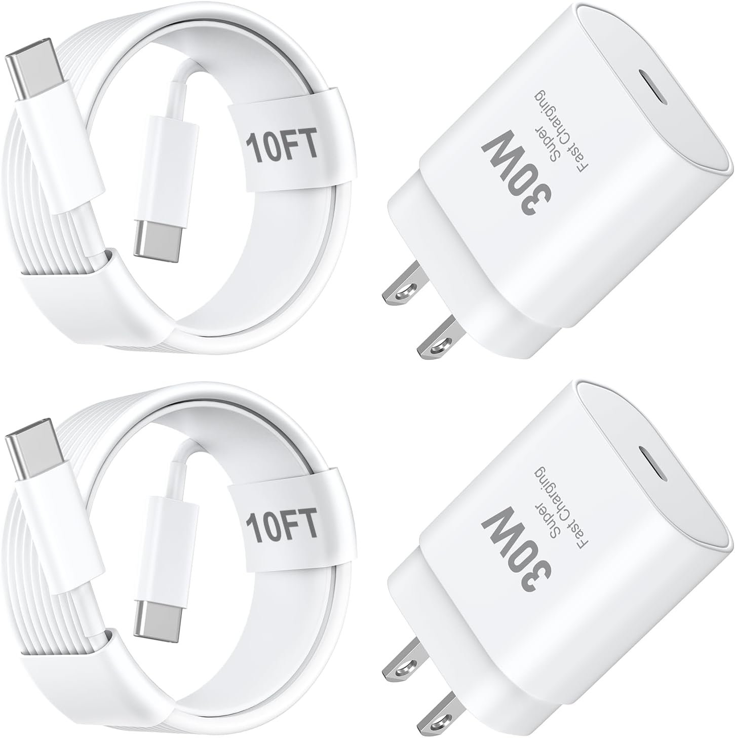 【Hassle-Free Service】2pack 30w iPhone 16 Pro Max charger block + 2pack Certified Long Charger USB C cable (10Ft).We will provide a 12-month worry-free warranty friendly customer service.Please don’t hesitate to contact us and we promise to solve your problems within 24 hours