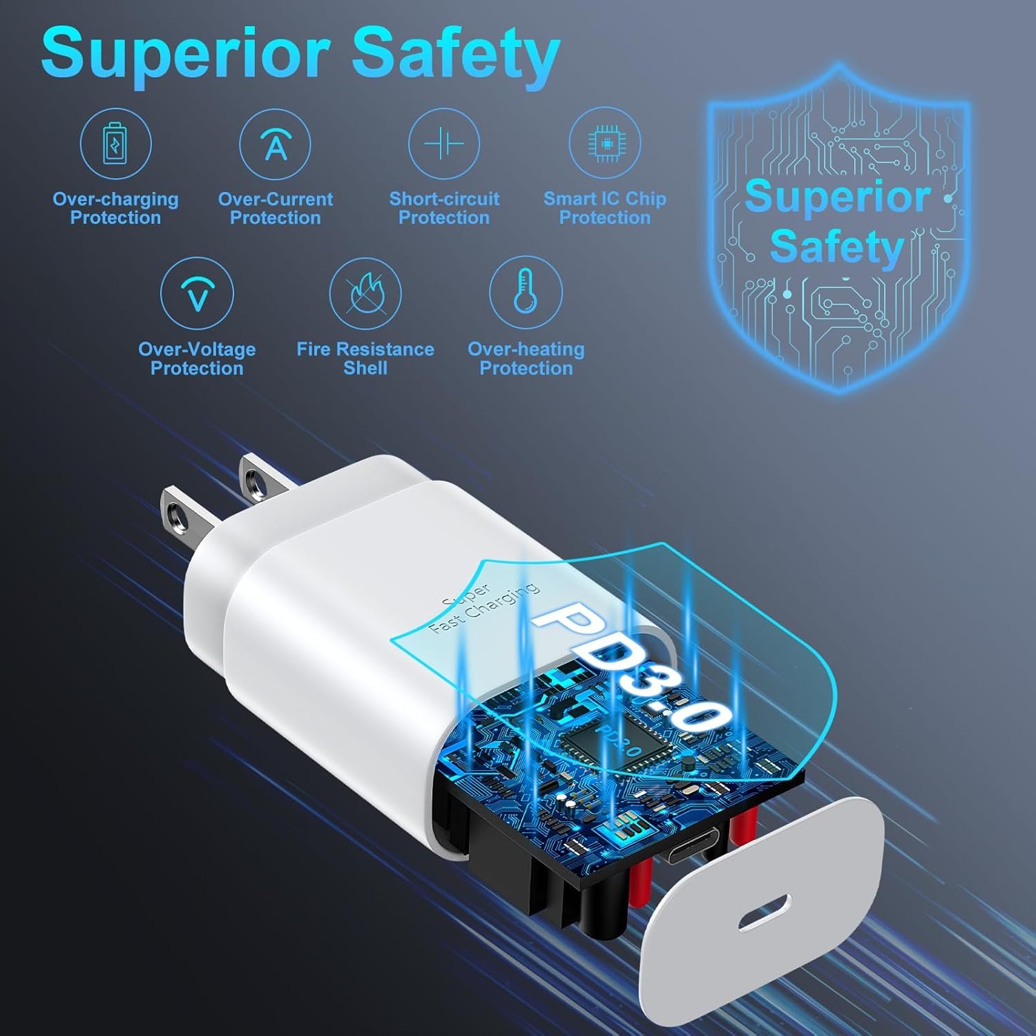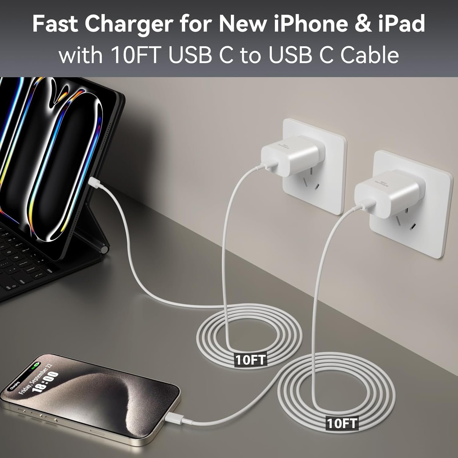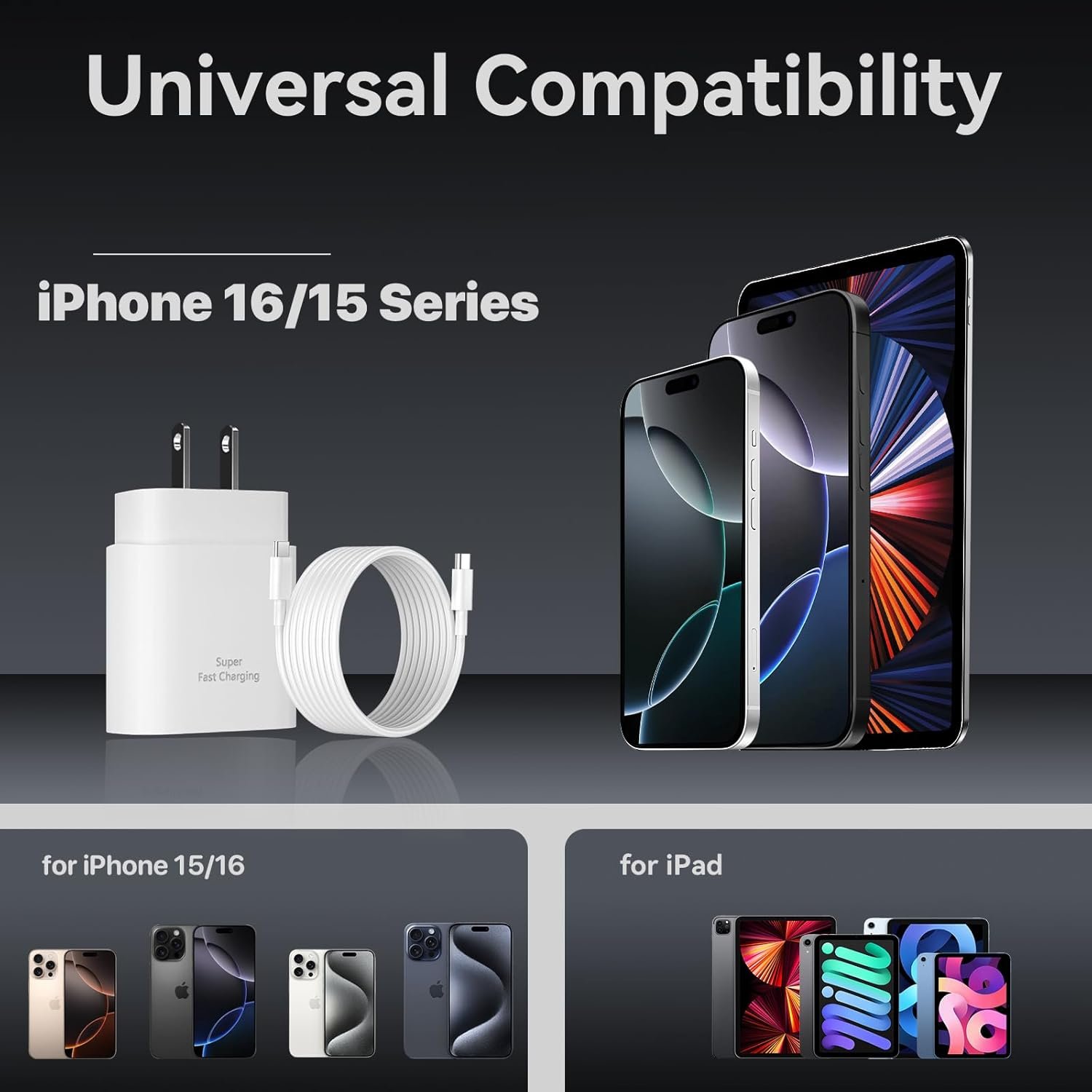 【Fast Charger for iPhone 16 & iPhone 15】USB C Fast Charge for iPhone 16/ iPhone 16 Pro/ iPhone 16 Pro Max/ iPhone 16 Plus,/iPhone 15/ iPhone 15 Pro/ iPhone 15 Pro Max/ iPhone 15 Plus,For iPad Pro 12.9 6th/ 5th/ 4th/ 3rd, For iPad Pro 11 inch 4th/ 3rd/ 2nd/ 1st, For iPad 10th Generation, For iPad Air 5/ 4, For iPad Mini 6.(NOTE: Not for iPhone 14 and previous versions)