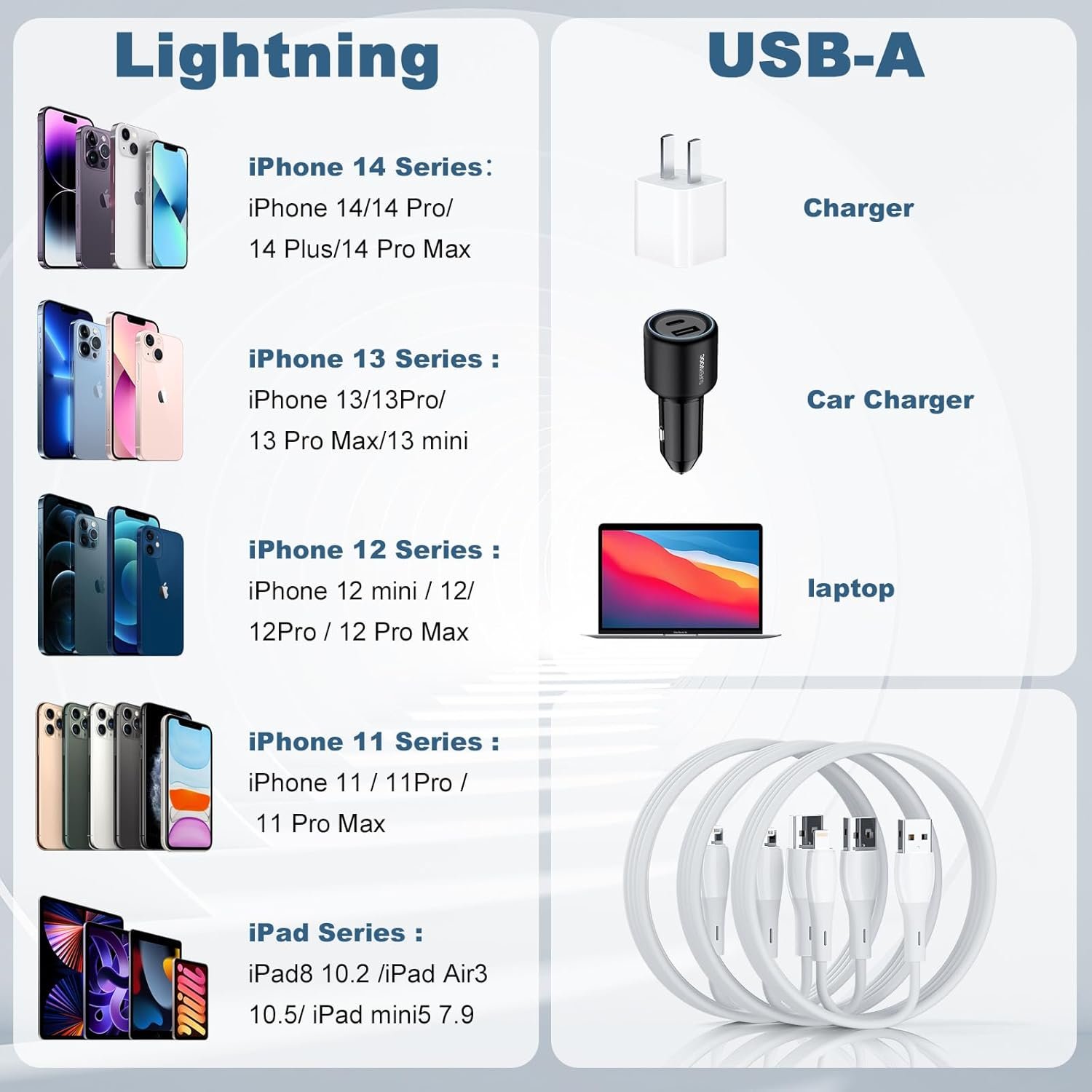 【3 Pack iPhone Charger Cable 3FT】: You will receive 3 packs of iPhone charger cord 3ft. If you own the Lieyichan iPhone lightning cable, you can charge your iPhone or iPad in the car, at the office, and have a spare cable