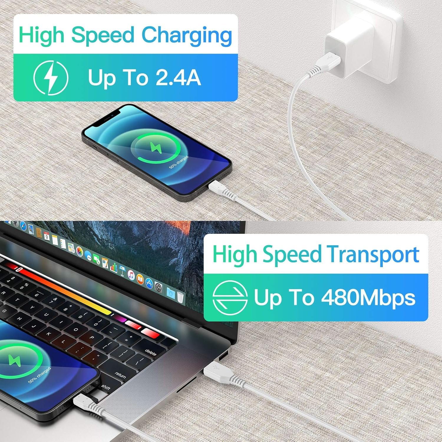 Fast Charge & Sync:High-quality four-core copper wires enhance charging & data transfer speed of the cables.Ensure a maximum charging speed up to 2.4A, charge faster than most standard cables and work better for tablets and quick charge devices. Great performance ensures your devices syncs and charge simultaneously with up to 480Mb/s transferring speed