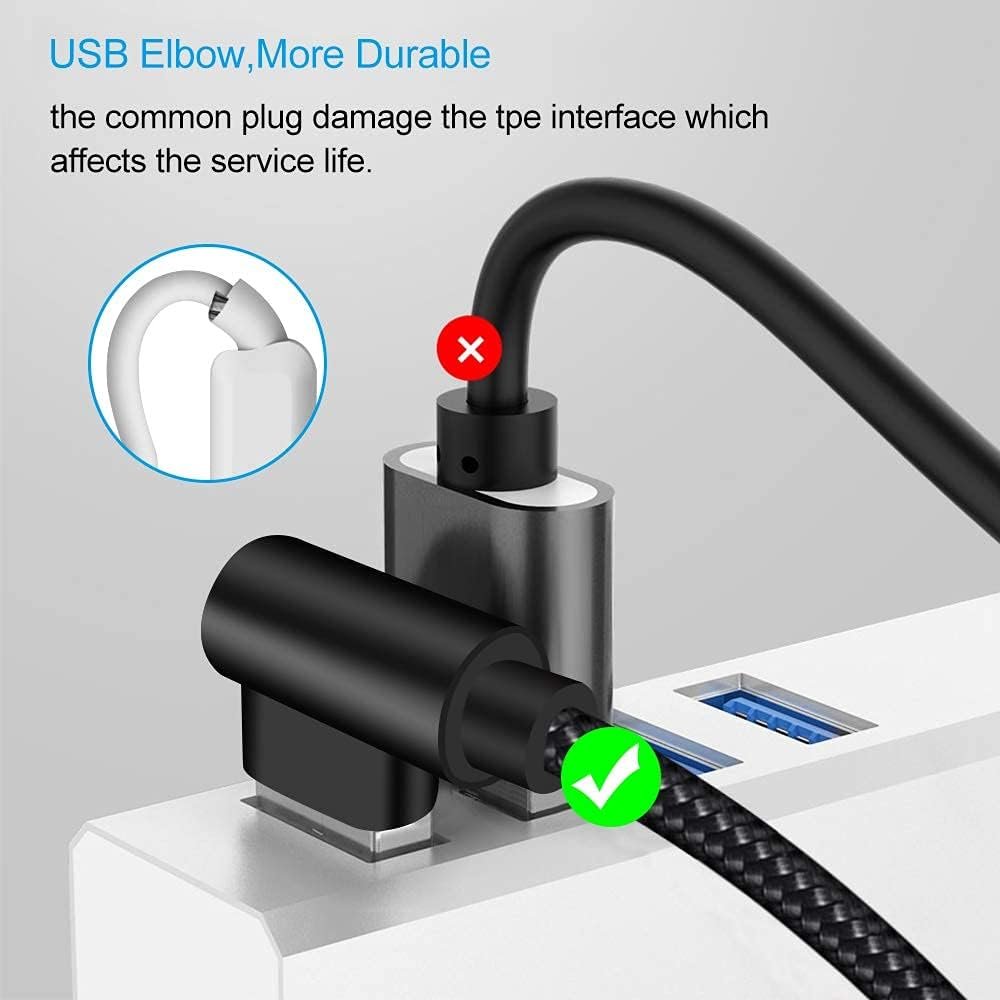90 Degree Design – The right angle design helps when holding and viewing the device while charging, also playing games,watching videos or reading e-books.The right angle the cord has on both ends.It really helps with not having the cord bend and break