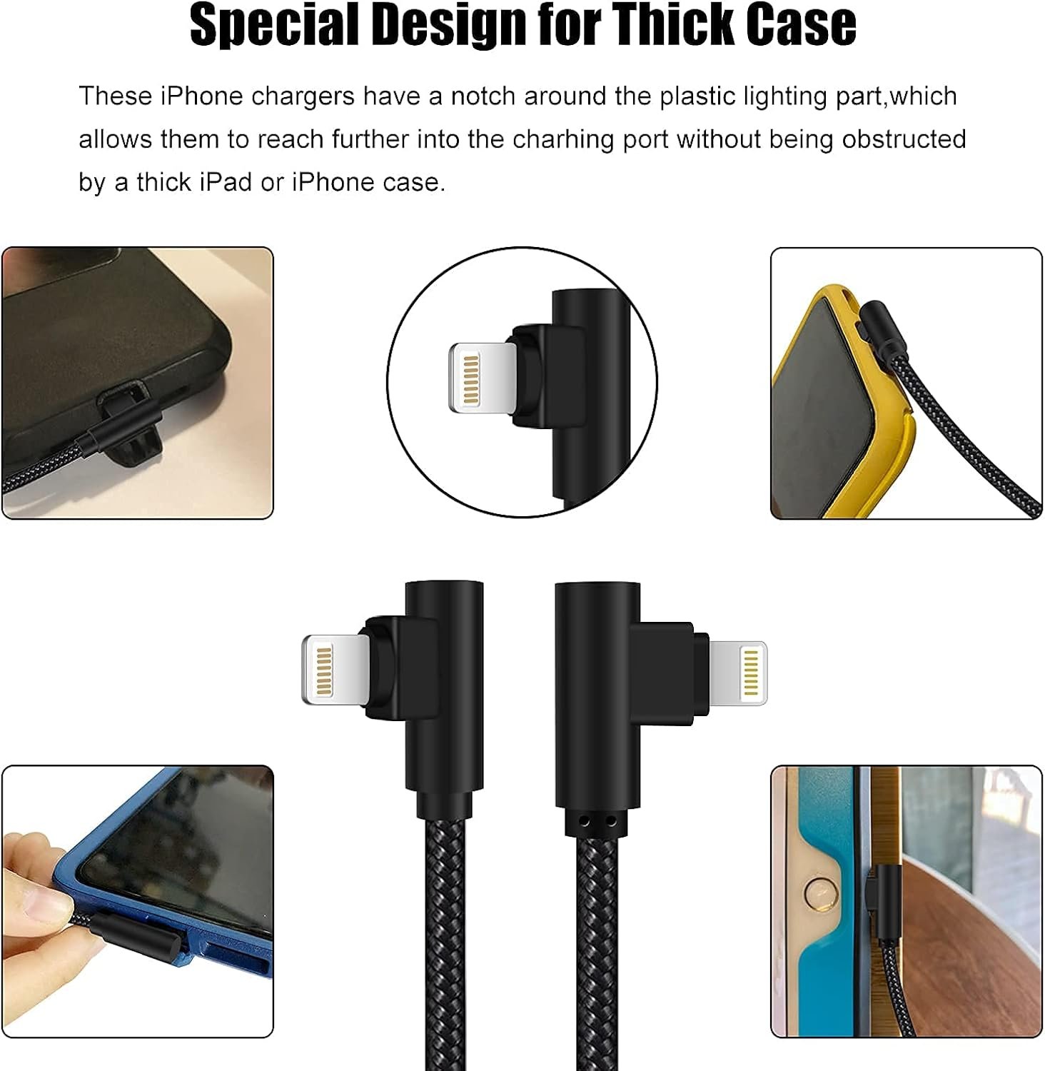90 Degree Design:More convenient and more comfortable for playing games,watching videos or reading e-books.Reinforced Stress Point:With a 10000+ bend lifespans make iphone cord more durable.