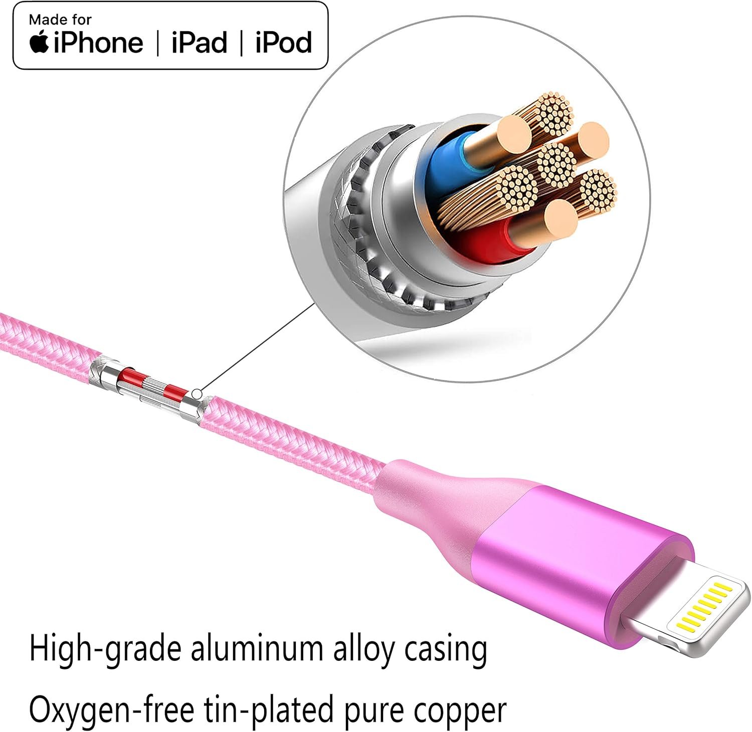 The iPhone Charger 6 ft is covered with nylon fabric to give the wire an extra layer of sturdy protection, Colorful Braided Charging Cable is ideal for long-term use. No overheating or overcharging problem, effectively prevent damage to the battery of your device