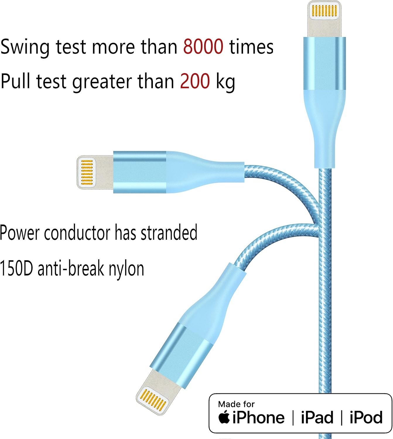 Nylon Braided Tangle-free Design Compatible with iPhone charging cable covered with premium colorful nylon braided with copper wires inside, ensure the Phone charger cable durability, flexibility and functionality. Compatible with iPhone charger has been flex tested over 30,000 times for extra protection, effectively prolong the service life.