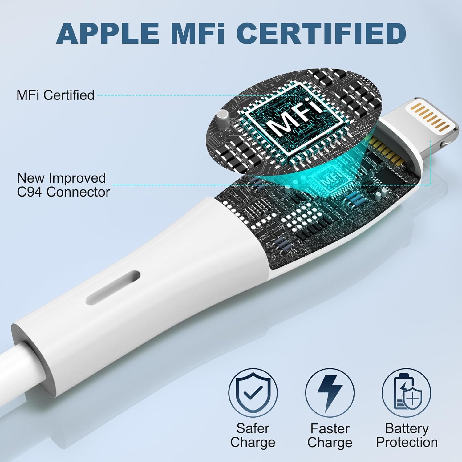 Lieyichan iPhone Charger Cord 6FT is certified by Apple MFI, perfectly compatible with most Apple devices, charging without error messages, and ensures that your lightning devices are loaded and charge safely and faster.