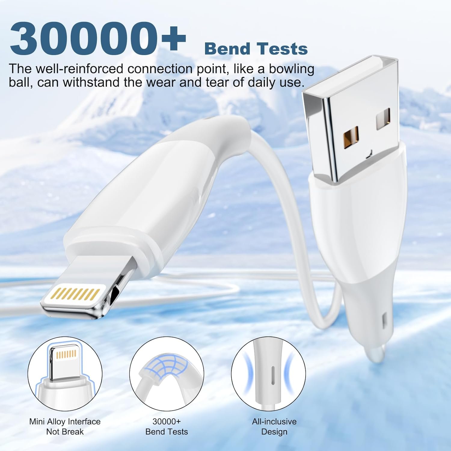 【Durable iPhone Charging Cable】: iPhone charger fast charging is covered with PVC material, which makes it more flexible and sturdy. Even when bent, folded or pulled, no more worries about frayed or unreliable charging cables