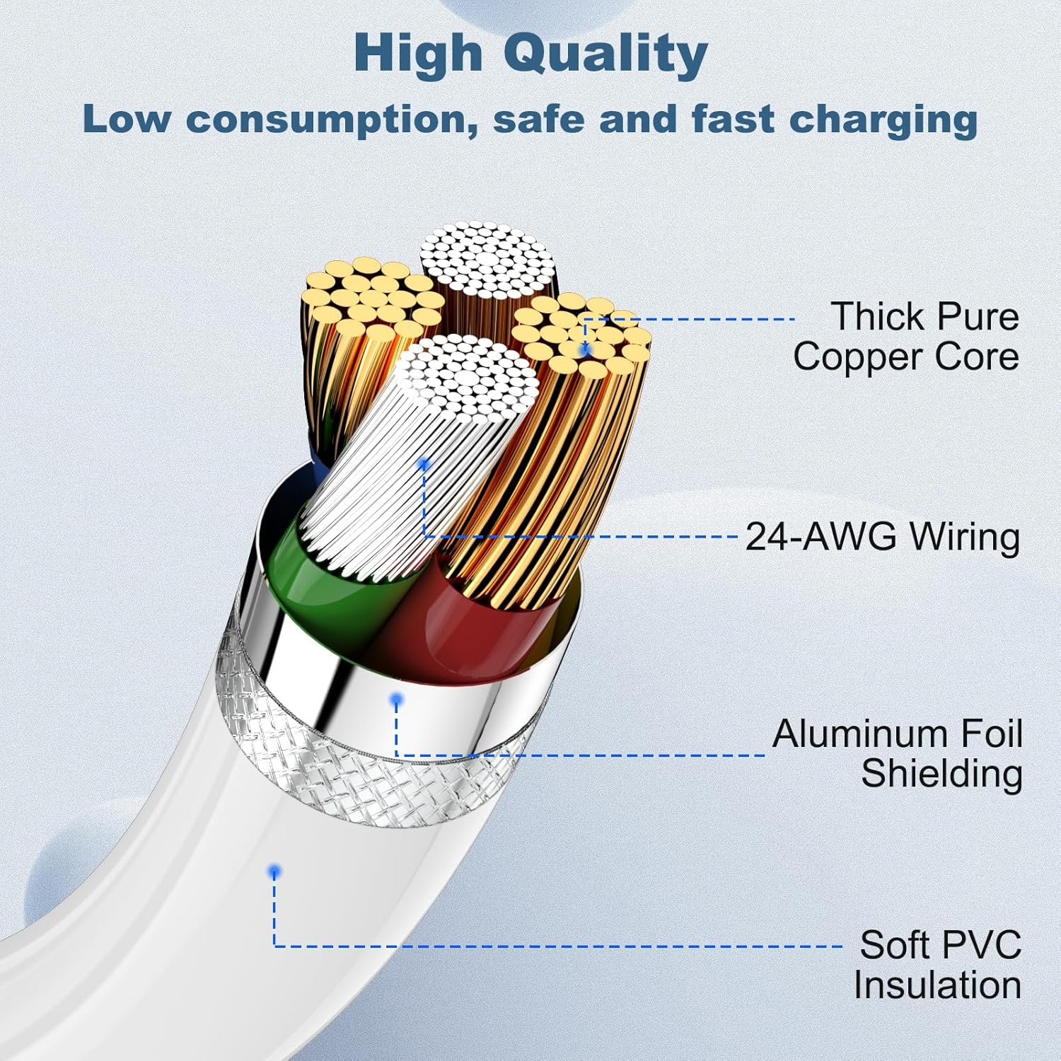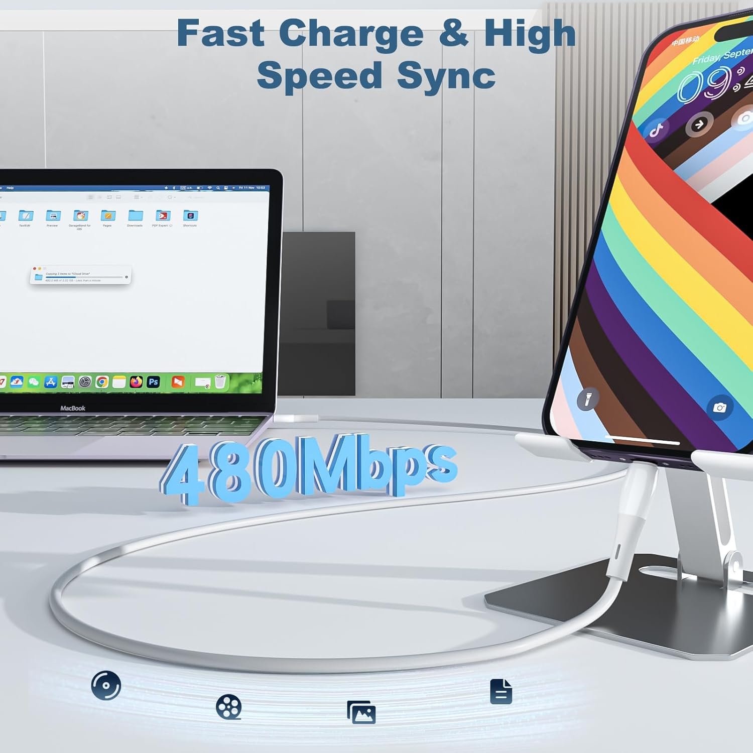 【iPhone Charger Fast Charging】: Apple charging cord is made of high purity and thicker copper wire, which effectively reduces resistance and supports up to 2.4A fast charging and 480Mbps transmission speed