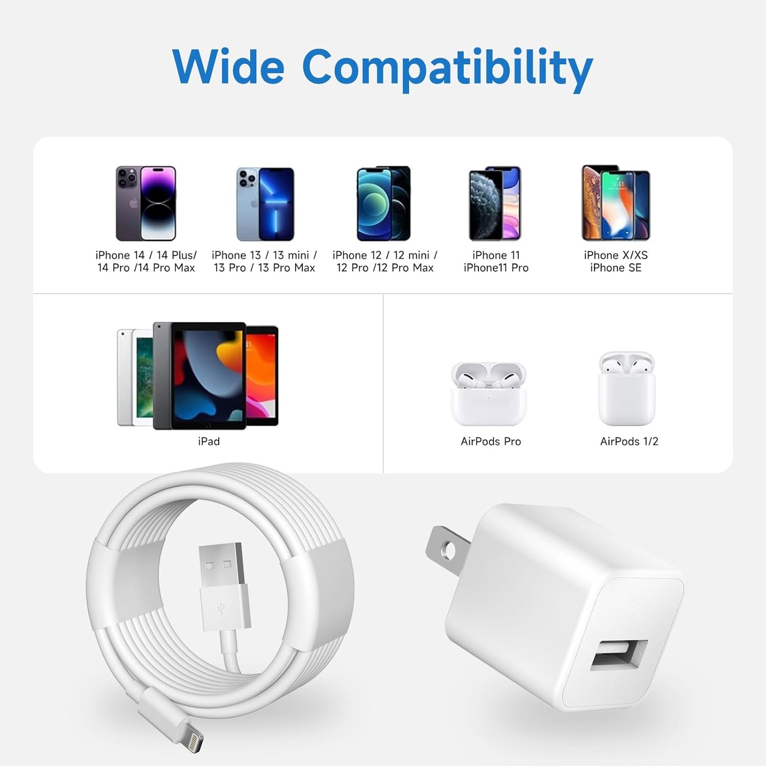 iPhone Charger Cable,3Pack (MFi Certified) Data Sync Charging Cords with 3Pack USB Wall Charger Travel Plug Adapter Compatible iPhone 14Pro/13 Pro/12/12 Pro Max/11 Pro Max/XS Max/XS/XR/X/8