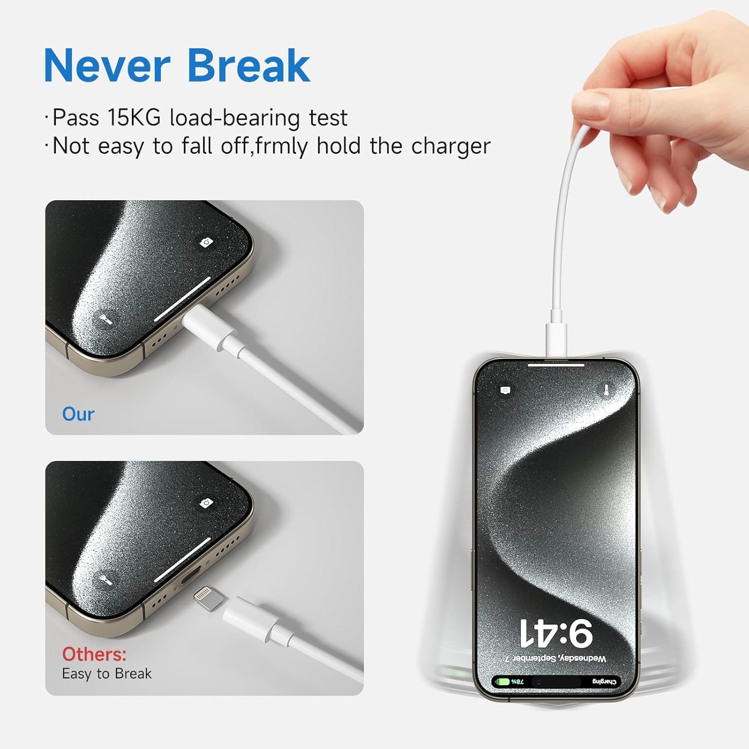 【Enough Long Cable】High quality iphone cable Sturdy enough to bear 12000+ bending and repeated unplugging and storage, ensure 100% charge and sync your devices with high speed. Tangle-free 3 Feet length is convenient for usage while charging and sync at home/office/travel in bed, hotel rooms, and more.