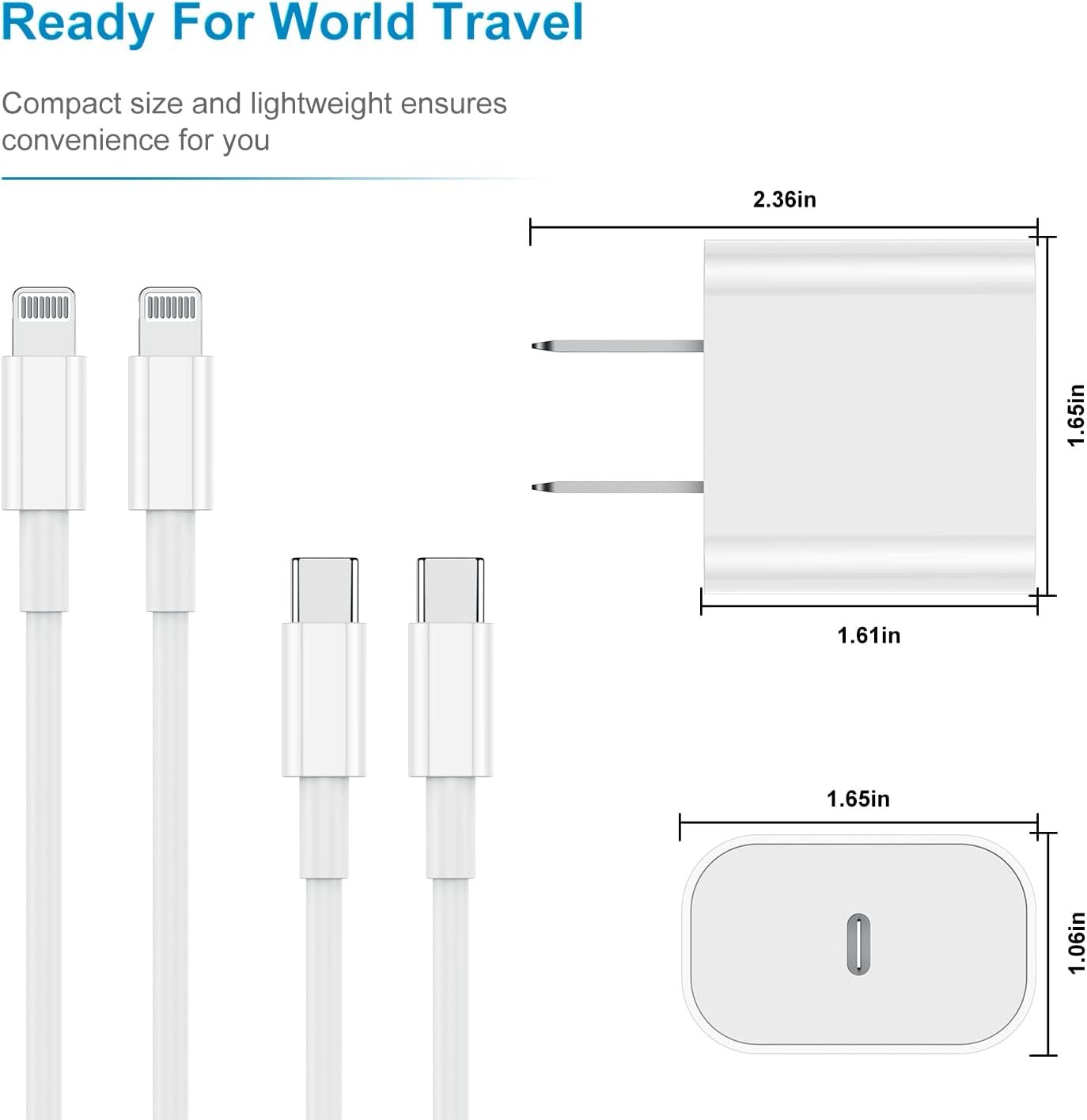 2Pack 20W USB C Charger with 2Pack 6FT USB C to Lightning cable.