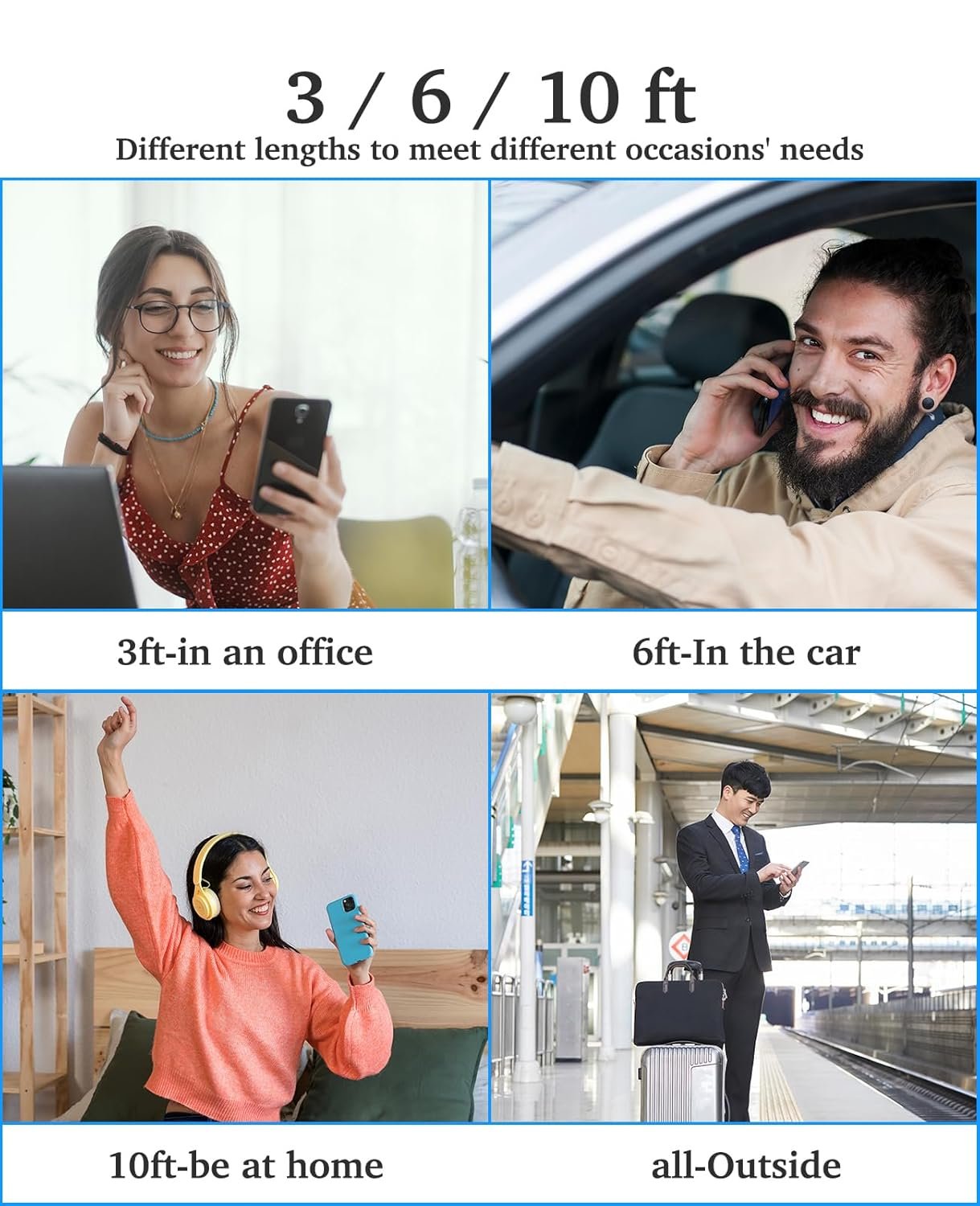 【Delightful Length&Superior Durability】6 colorful Apple MFi-certified iPhone charging cable, 3/3/6/6/6/10 feet various lengths, feel free to choose where to charge. iPhone charging cable with reinforced joint designs that have passed many times bending tests for extra protection and durability