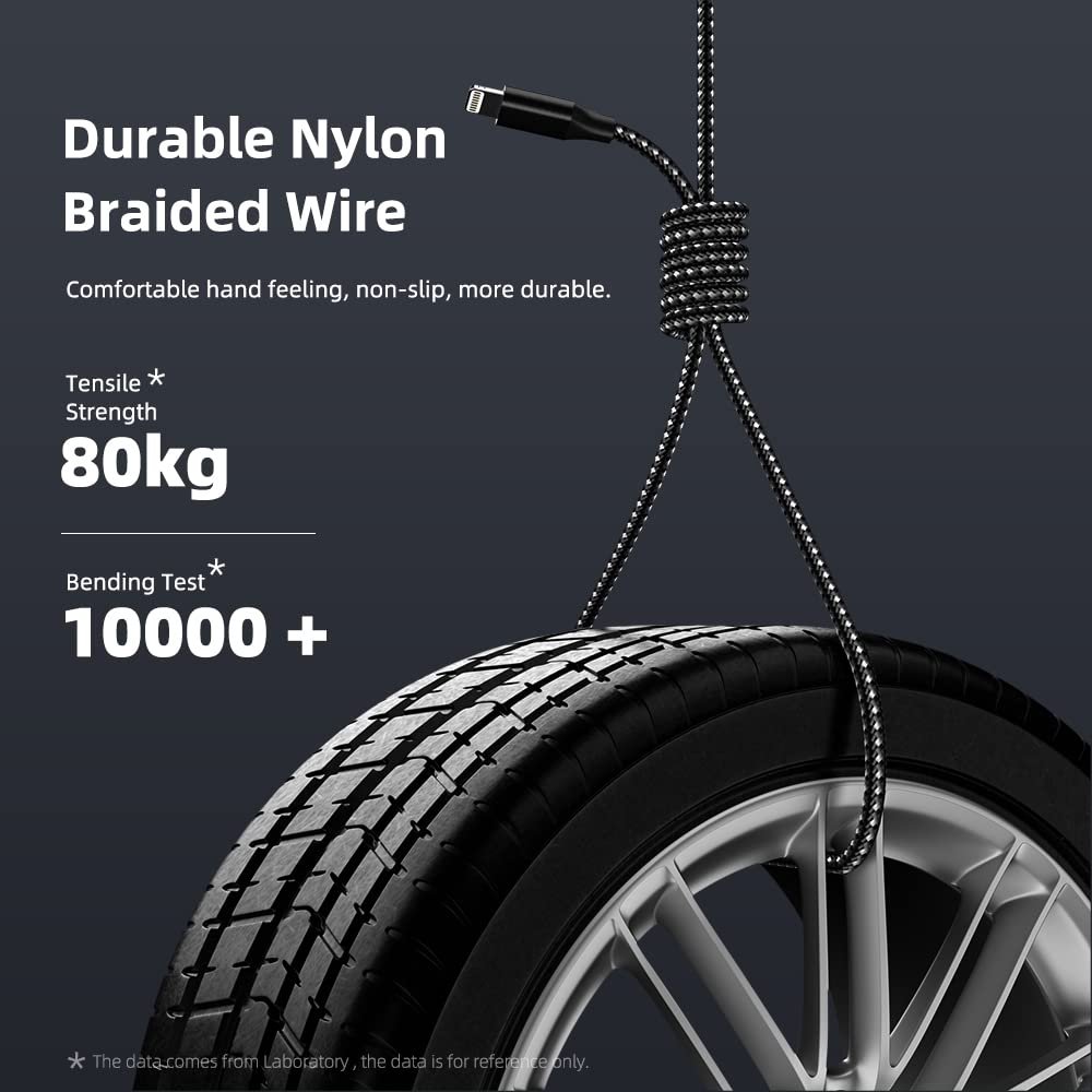♥【iPhone Cable Nylon Braid】: The iPhone charging cable is designed with a reinforced connector that has passed more than 15,000 bend tests for extra protection and durability. Braided nylon insulation and precision layered welded connectors make the cable more durable and stronger than regular iPhone charger cables, yet flexible and tangle-free. Withstand every day-to-day connectivity needs and long-term use.