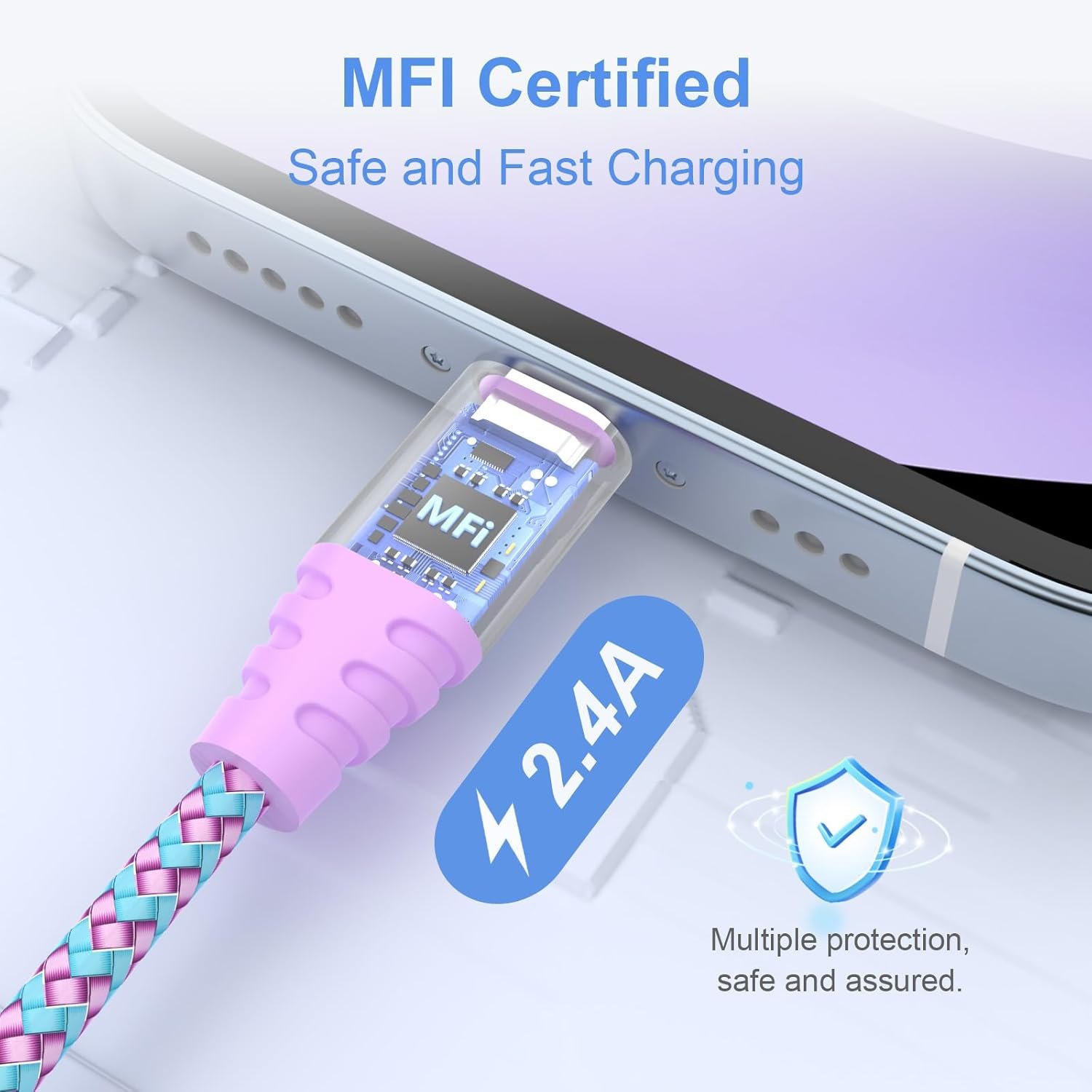 [Apple MFi Certified]:Our Lightning Cable is equipped with an authorized chip directly from the official source, ensuring swift charging for your iPhone. Rest assured, you won’t encounter any warning pop-up, allowing you to indulge in safe and fast charging for all your devices.