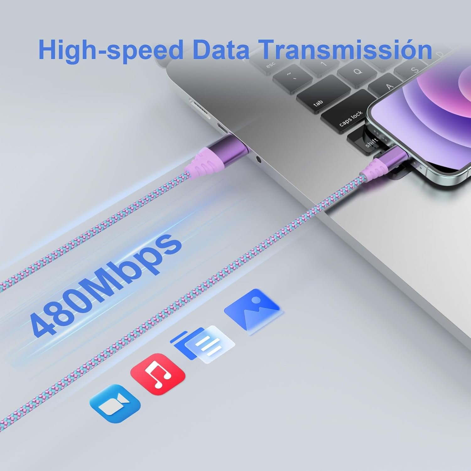 [Fast Charging & Data Transfer] :For this iPhone charger cable ,it is designed with high-quality copper wire, ensuring fast charging and high-speed data transmission. With a transfer speed of 480Mbps and a 2.4A output, you can experience lightning-fast syncing and charging, allowing you to save time and enjoy a more efficient lifestyle.