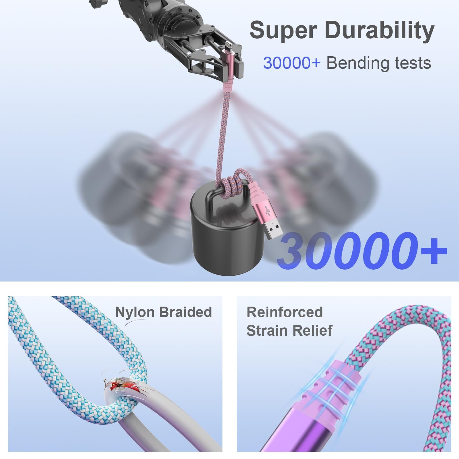 [Upgraded Quality and Superior Durability] :Our fast charger iphone cable is meticulously designed with a reinforced aluminum case and tangle-resistant nylon braided material, ensuring superior durability compared to regular lightning cables. It has undergone rigorous testing, including more than 30,000 bending tests, proving its exceptional strength and longevity. With this cable, you can confidently tackle all your day-to-day connectivity needs without worrying about wear and tear.