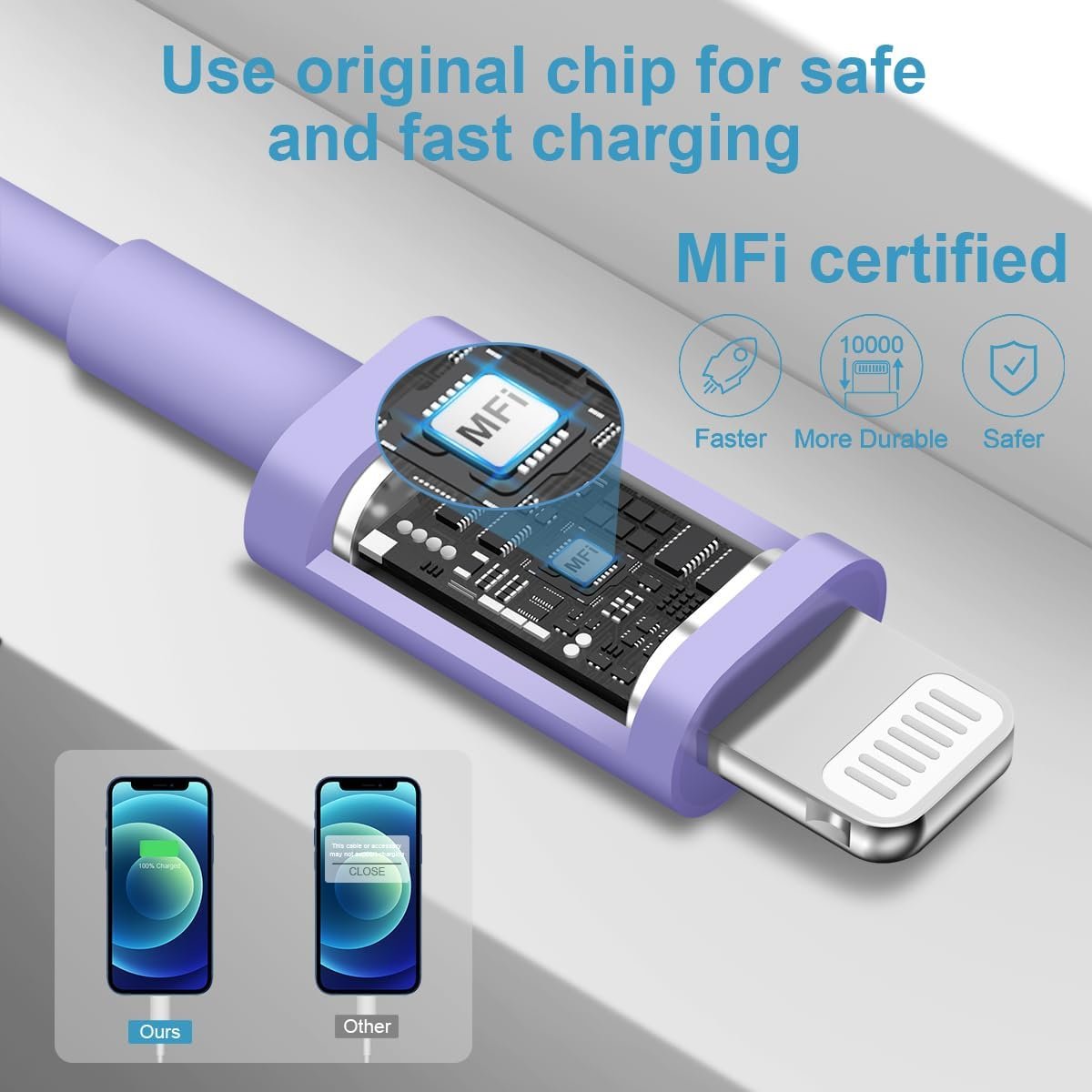 It not only a safe iPhone charge cable, but also a fast trasfering iPhone data cable.