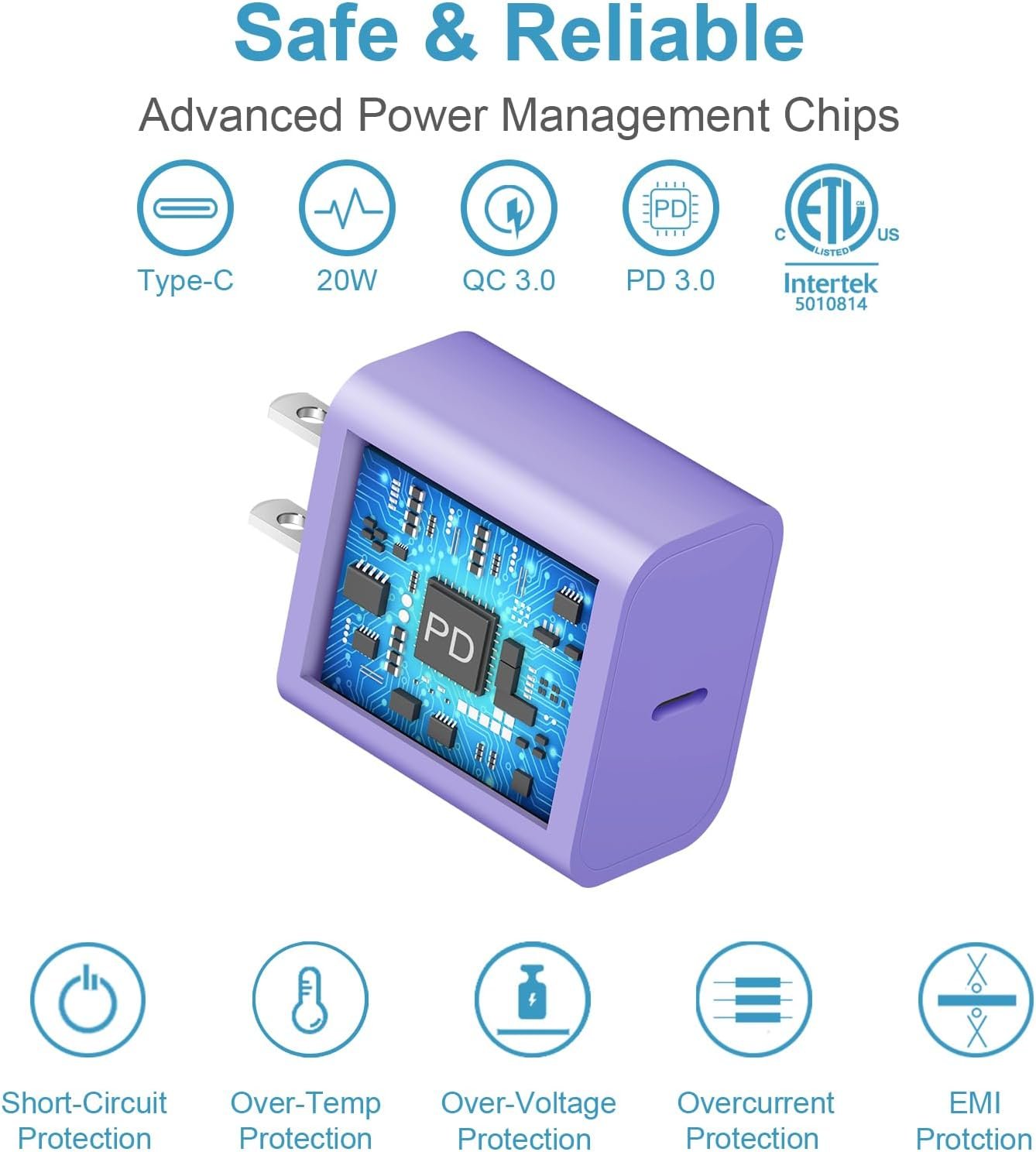 MFi certified with safe and durable allows you to use with confidence. The updated smart iQ chip in the USB-C power adapter protect your phone and pad from overcurrent, over-voltage, short-circuit and overheating.
