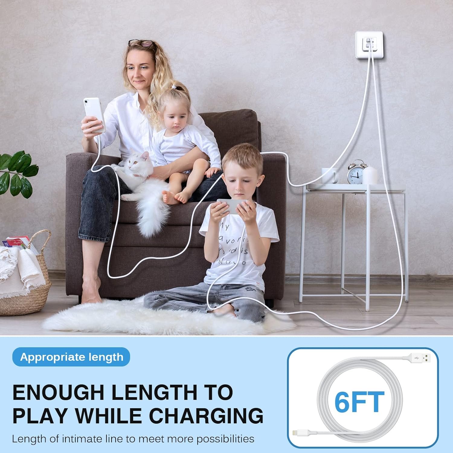 【6FT Extral Long Dual Port iPhone Charger】6FT Chargers for iPhone with 2 USB port enables you to charge two devices like iphone 13 charger and iphone 12 charger at the same time.Meanwhile,it is the perfect length so you can be free to move around in bed.