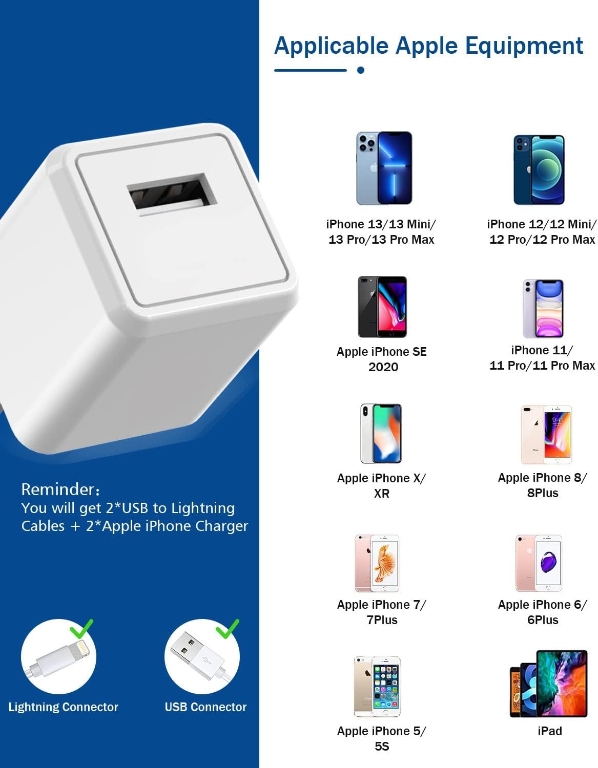 【 Hassle-Free Service 】 2* Chargers for iPhone and 2* Fast Charging Data Sync Cord(6FT).If you have any questions, don’t hesitate to contact us!
