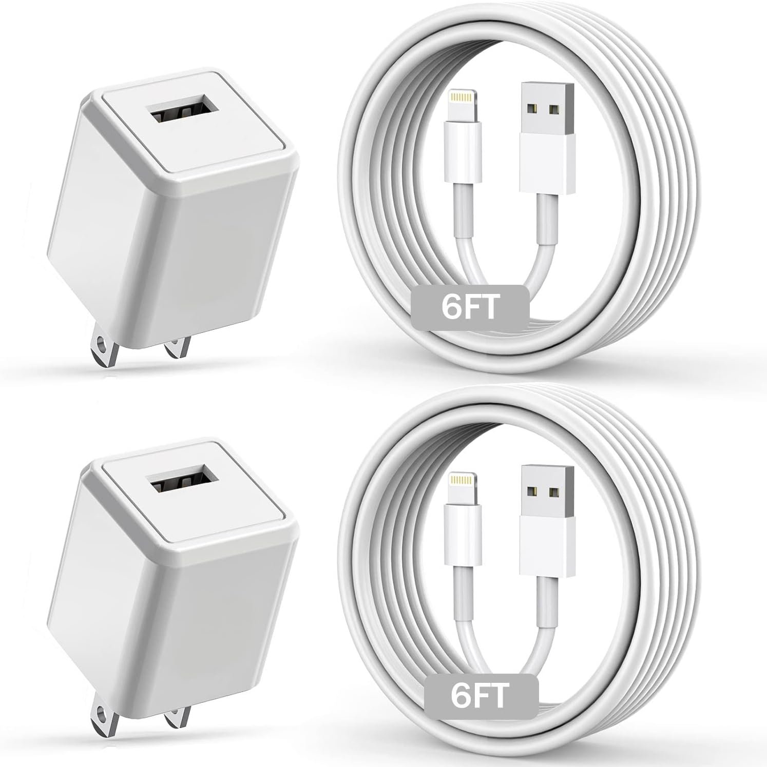 2pack USB Portable iPhone charger block + 2pack Approved for iPhone Certified Lightning Cable(6FT)