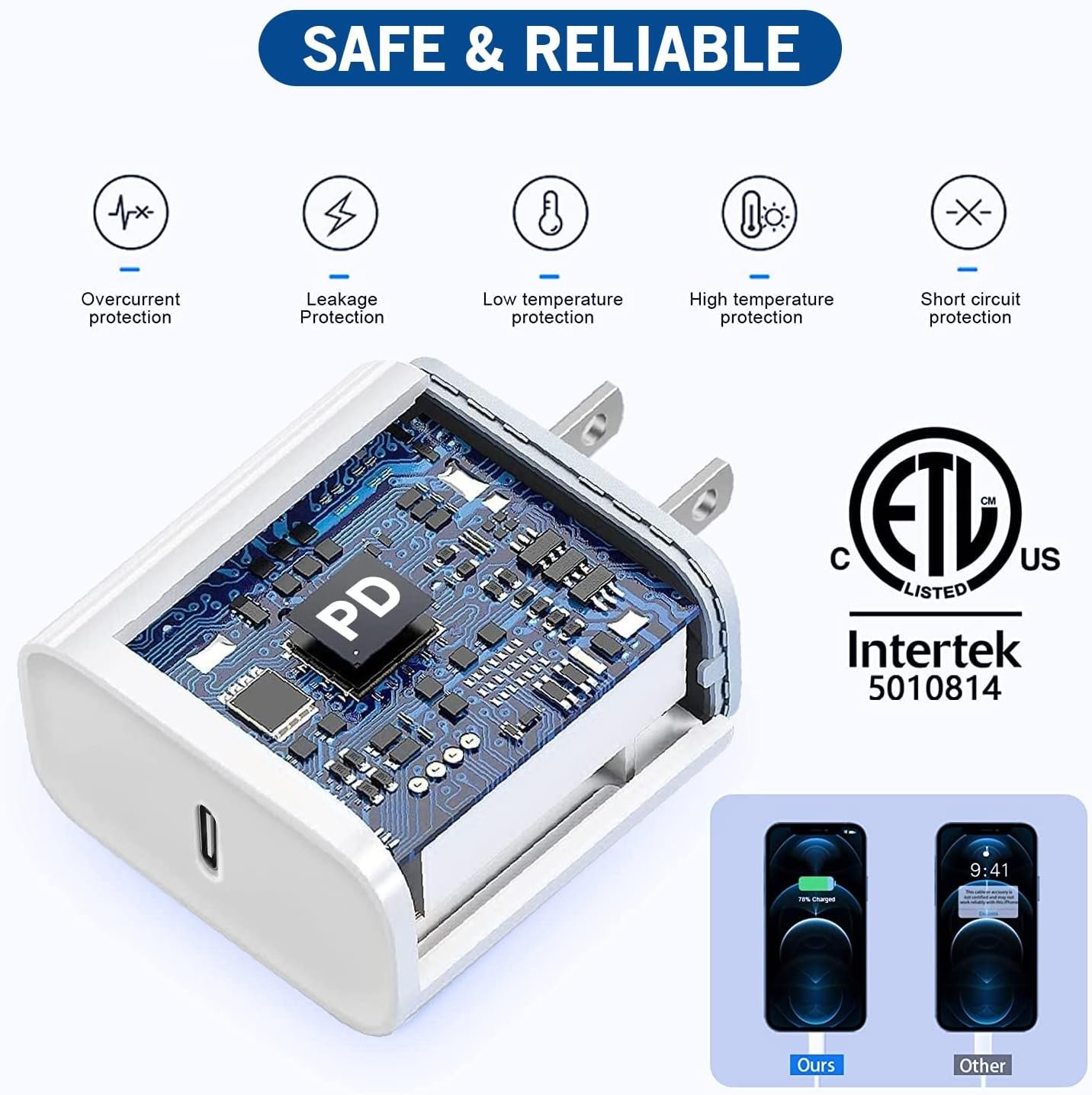 【What You Get】: 2x USB C iPhone charger block and 2x 10FT Apple Certified Lightning Cable, and we will provide every customer 12-month warranty and friendly customer supports. If you have any questions about the iPhone Wall Charger, feel free to contact us. We would offer the most professional and prompt respond within 24 Hours!