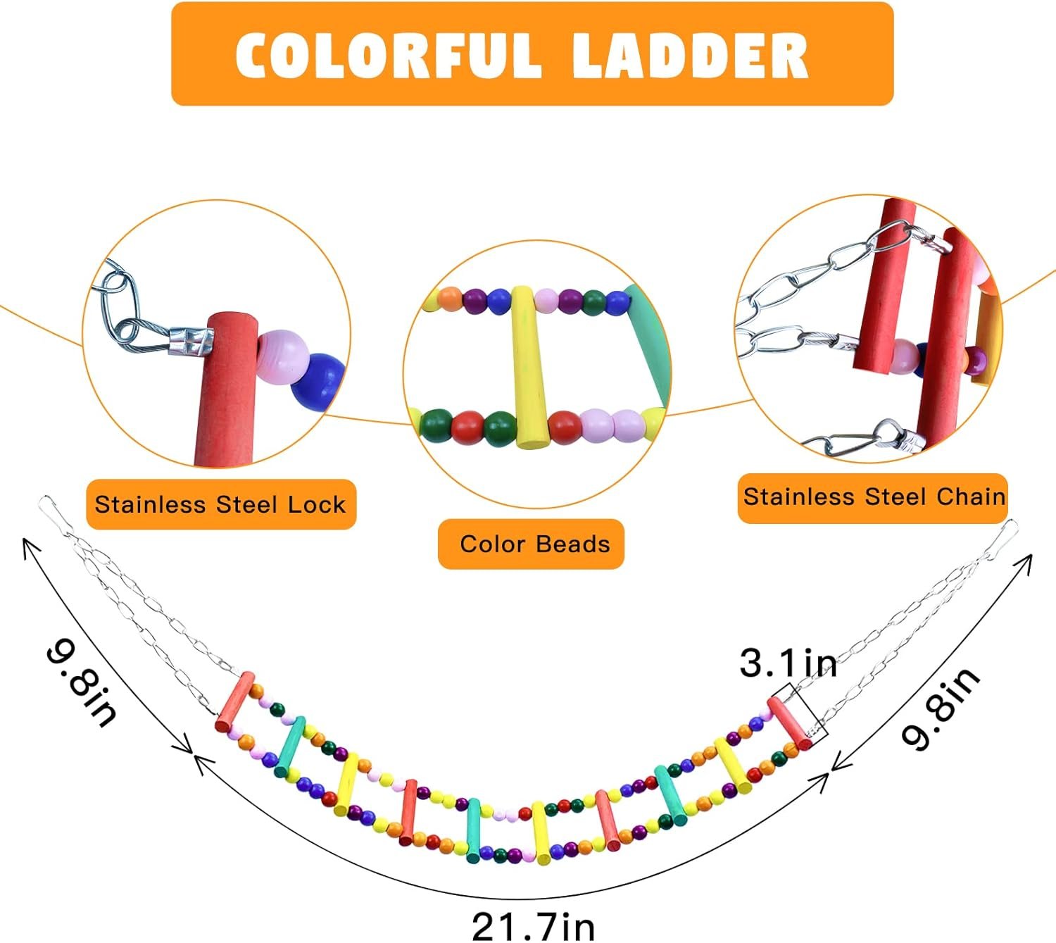 🐔【Music Chickens Xylophone Swing Toys】 Made of natural wood, colored wood beads, bells and hardware, the chicken swing xylophone ladder is durable and hygienic. Bright colors will encourage your chicks to explore the toys with their beaks and PAWS.