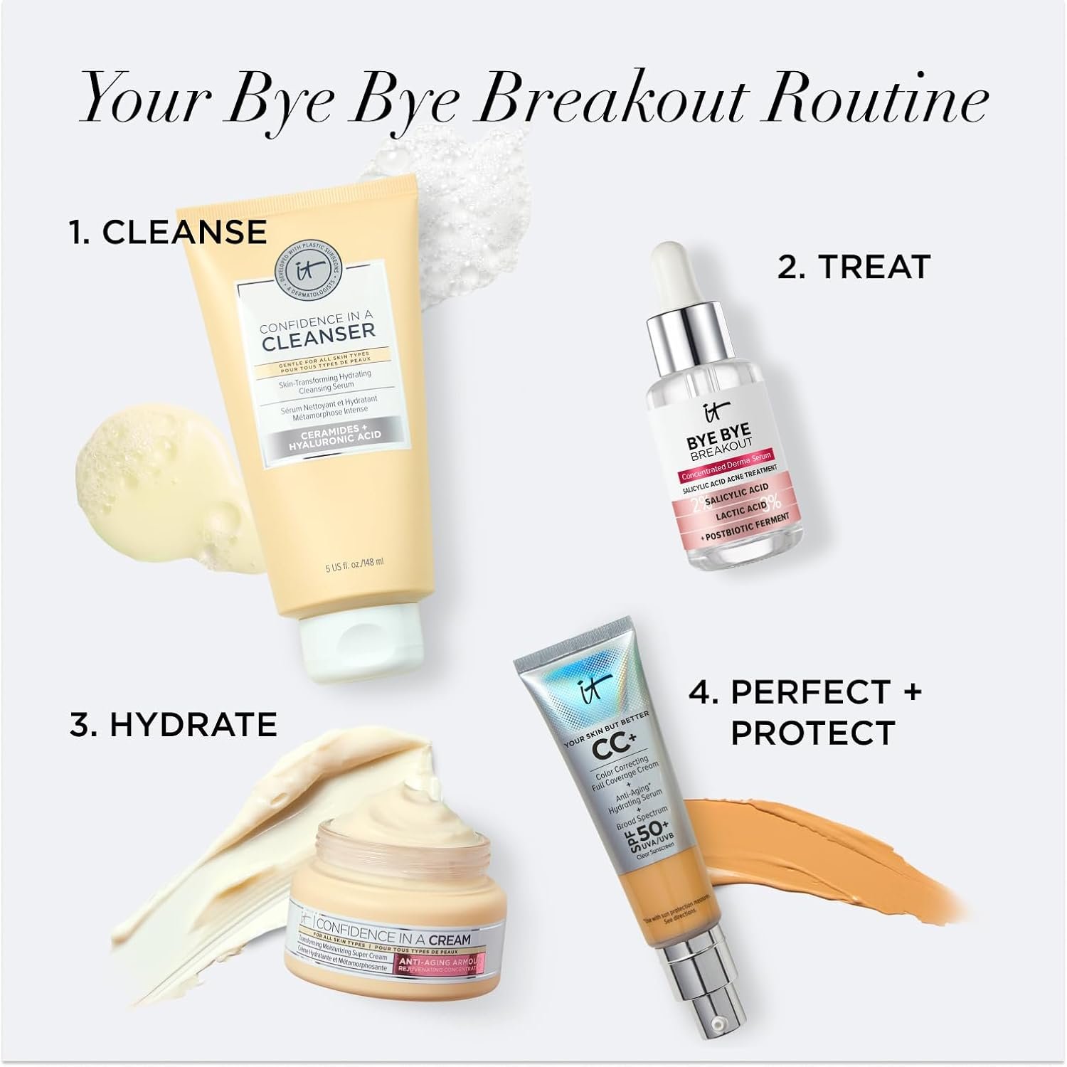 IT Cosmetics Bye Bye Breakout Acne Treatment Face Serum -With 2% Salicylic Acid & 3% Lactic Acid – Helps Reduce Pimples in 3 Days & Fades Look of Post-Acne Marks in 8 Weeks – 1 Fl. Oz