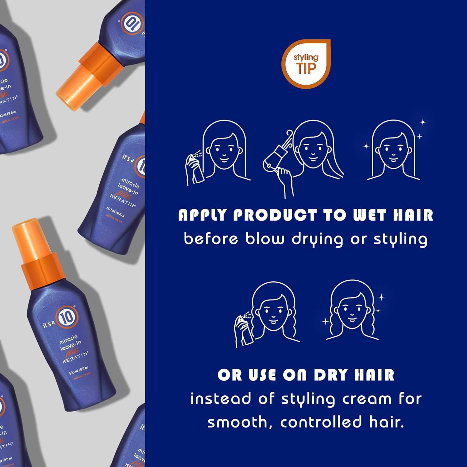 After using Miracle Moisture Shampoo and Daily Conditioner, apply leave-in product wet hair before blow drying or styling. Or use on dry hair instead of styling cream for smooth, controlled hair. Shampoo and condition hair and towel dry. Apply leave-in product to wet hair before blow drying or styling or use product on dry hair to smooth down flyways for a softening styling spray. Apply throughout clean, damp hair, working through with fingers. Partially air dry (10 min) before blow drying or heat styling. Makes an excellent taming/hold product for sleek styles. Just apply as you would light hold hair spray or spray. Shampoo and condition hair, towel dry, spray product all over hair. Massage by hand or comb through hair with a wide-toothed comb to detangle and volumize hair. Use as a moisturizing hairspray or setting spray for slicked back styles.