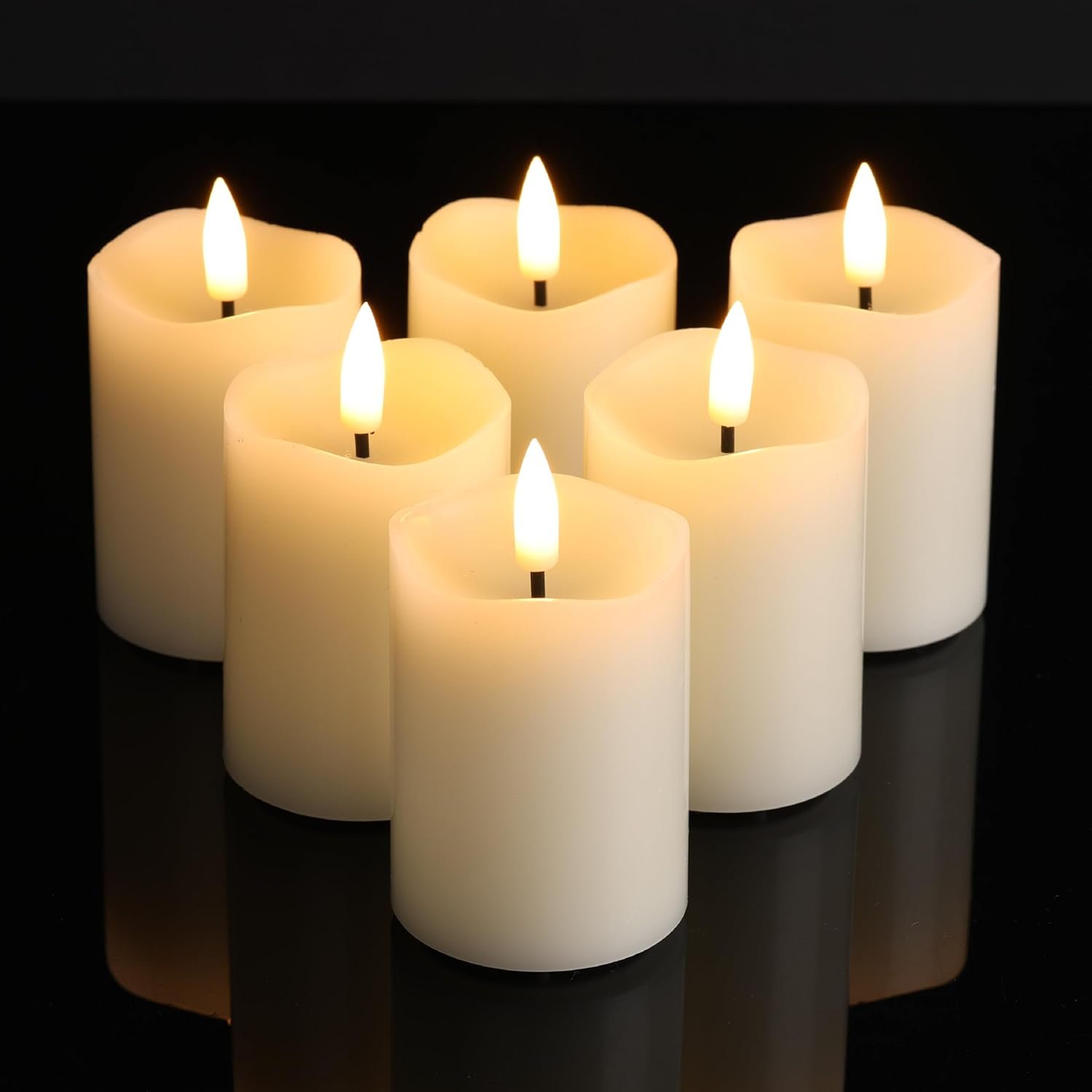 Flickering Realistic Candles – coated with real wax, these flameless candles is simulated with black wick, gives off a warm glow, it is hard to tell the difference from real candles especially lit up.