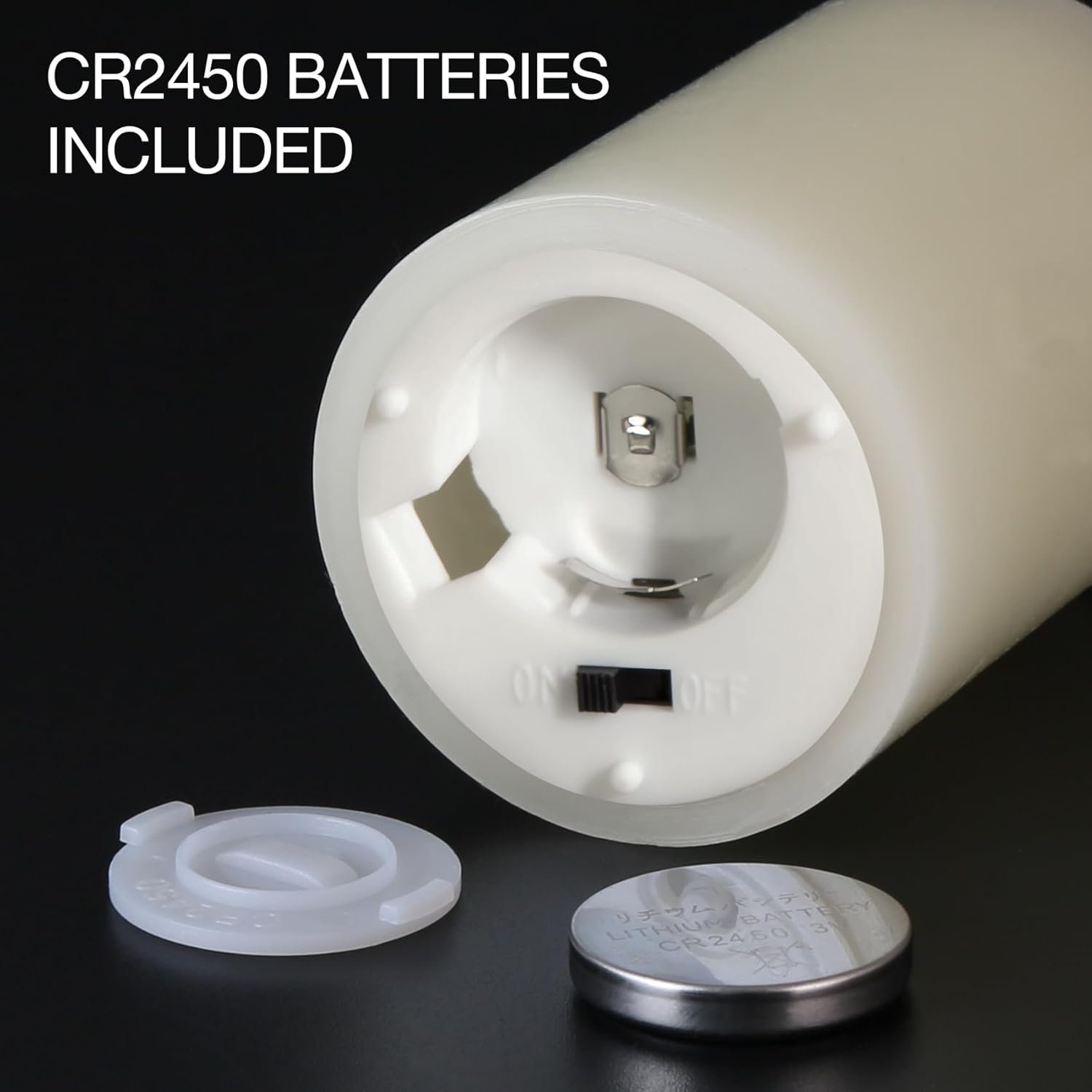 Battery Operated Candles – each candle is powered by 1 cr2450 coin cell (INCLUDED), lasting over 350 hours, 2 longer battery life.