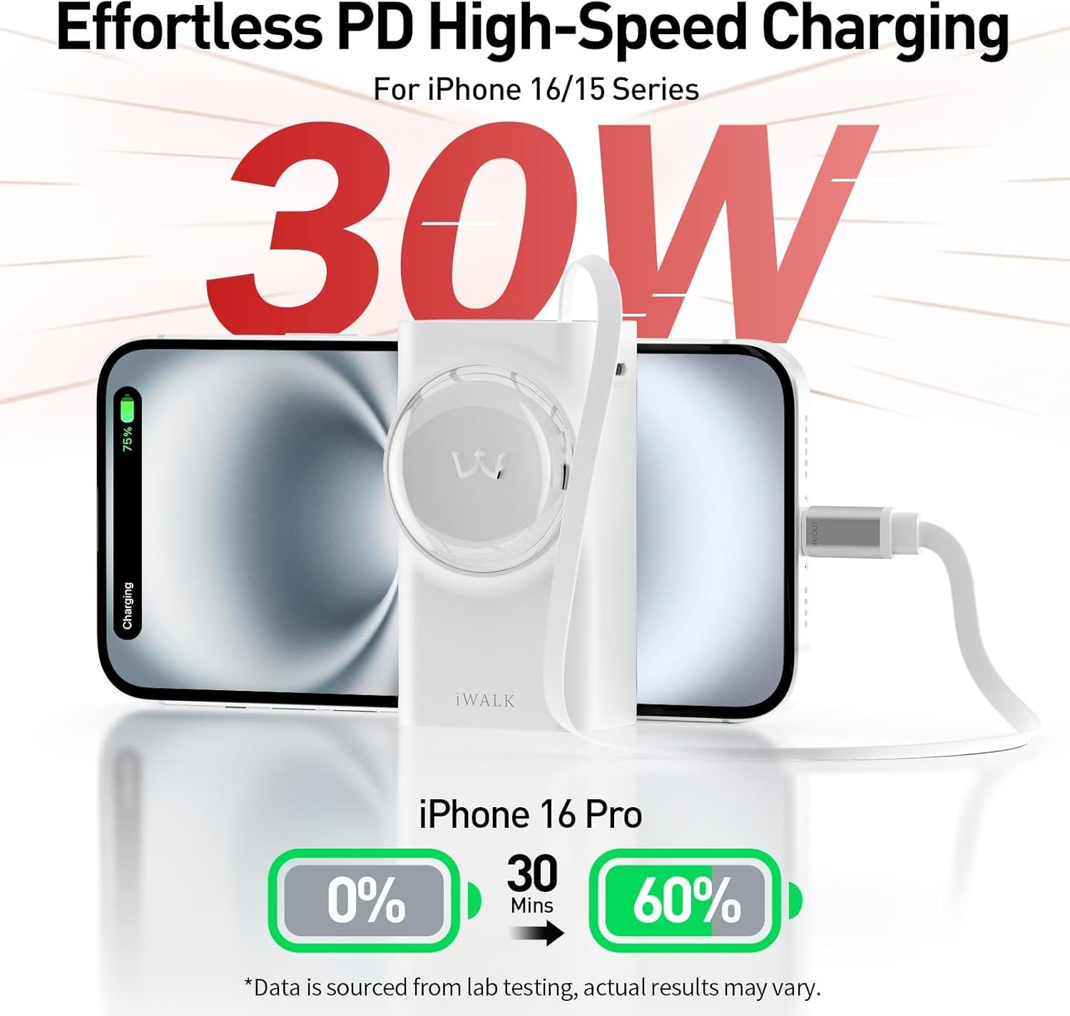 30W PD Bi-Directional Fast Charging: Boost your portable charger to 50% in just 45 minutes or charge your iPhone 16 Pro Max to 60% in 30 minutes, thanks to PD 30W fast charging in both directions.