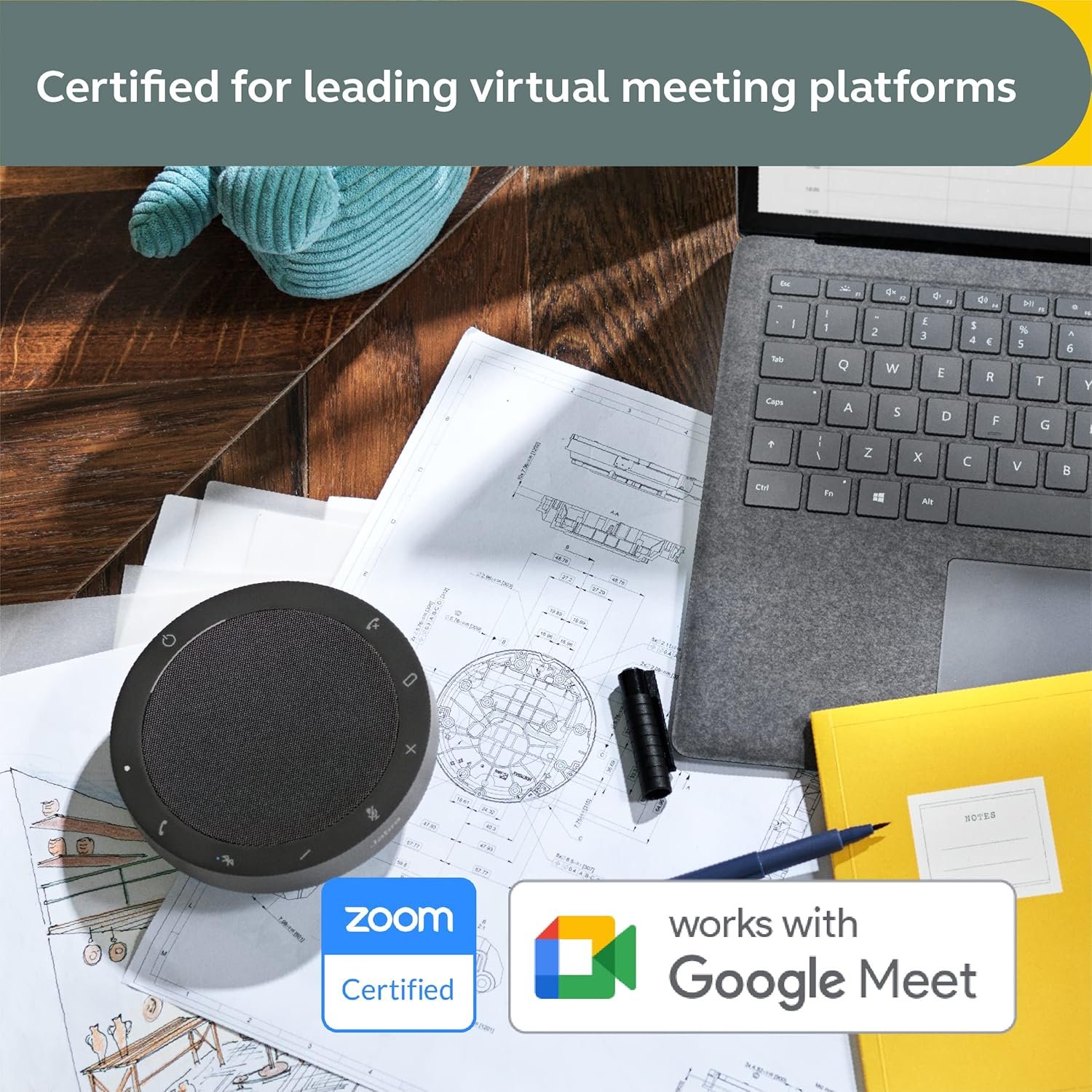 MEET ANYWHERE, ANYTIME: Set up a meeting wherever you are with this easy-to-use Bluetooth portable speaker, ensuring you’re always ready to connect; Certified for Microsoft Teams