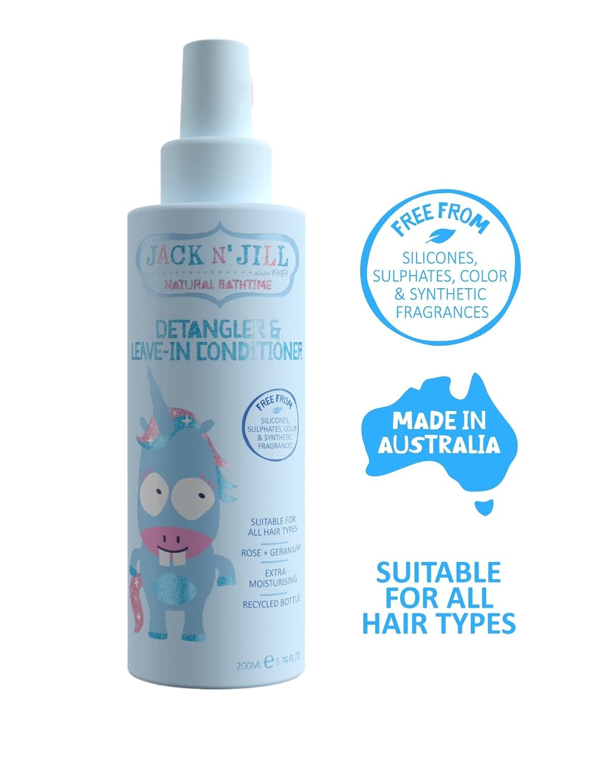 CONTROLS TANGLES, FRIZZ, & LONG HAIR – Jack N’ Jill Detangler & Leave-In Conditioner is a simple spray and leave, reducing the time spent negotiating this last step of hair care!
