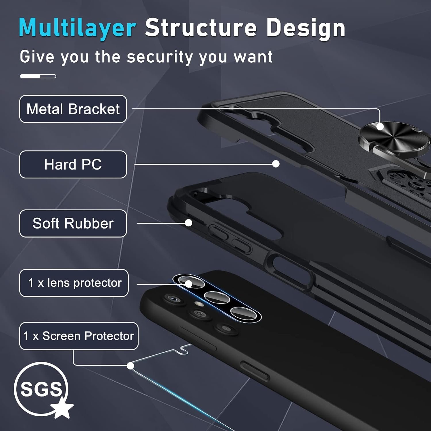 Double Layer Protection:The case’s shock-absorbing TPU bumper keep your phone safe from the occasional drop,while its Hard PC back will protect the A14 from daily wear and tear.Moreover,the raised lip protects screen and camera effectively